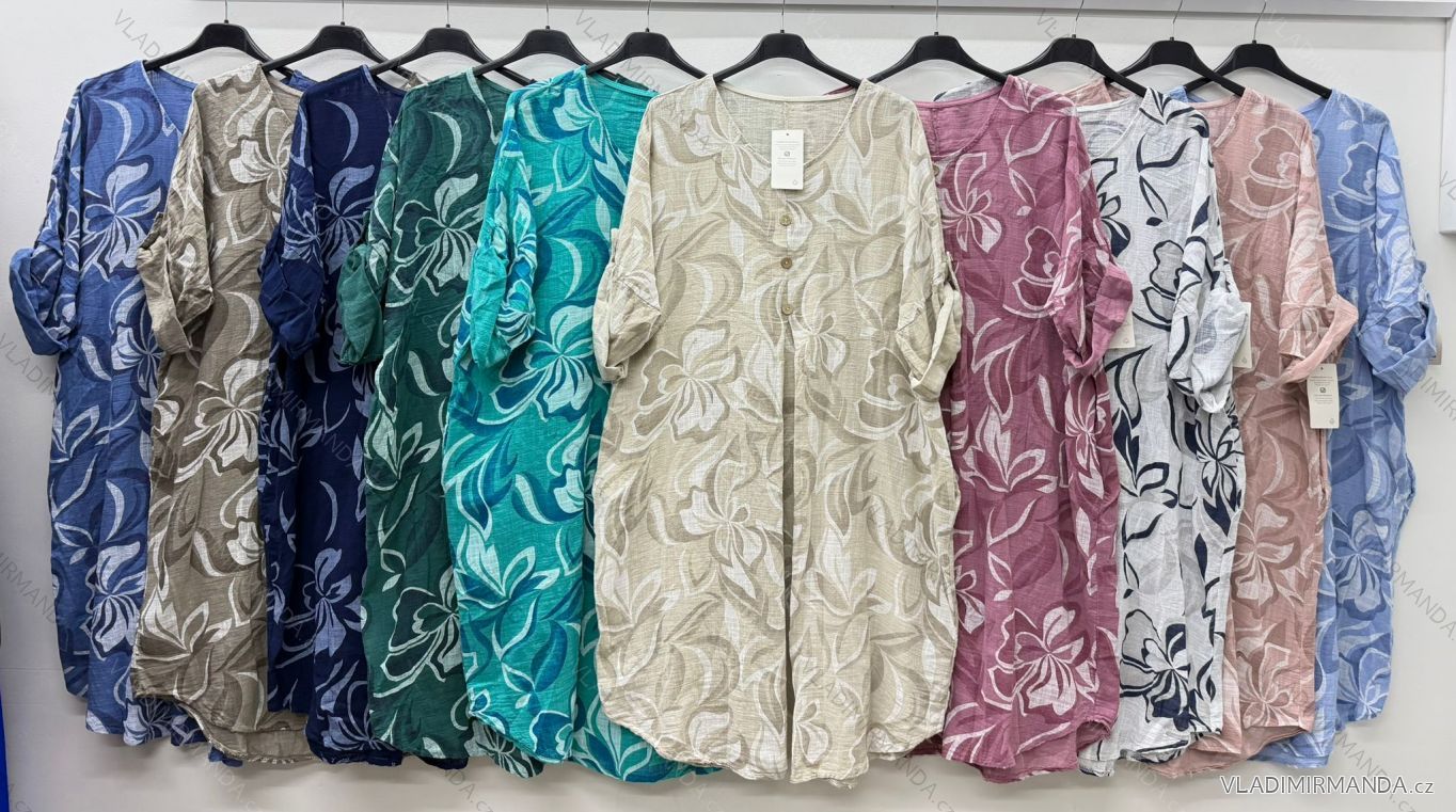 TOVAR (120808) > oblečenie dámske (81890) > šaty (30750) > Šaty letné volnočasové (16918) > Šaty letné a plážové (13059) > Šaty košeľové letné krátky rukáv dámske nadrozmer (54/56/58 ONE SIZE) TALIANSKA MÓDA IM426116