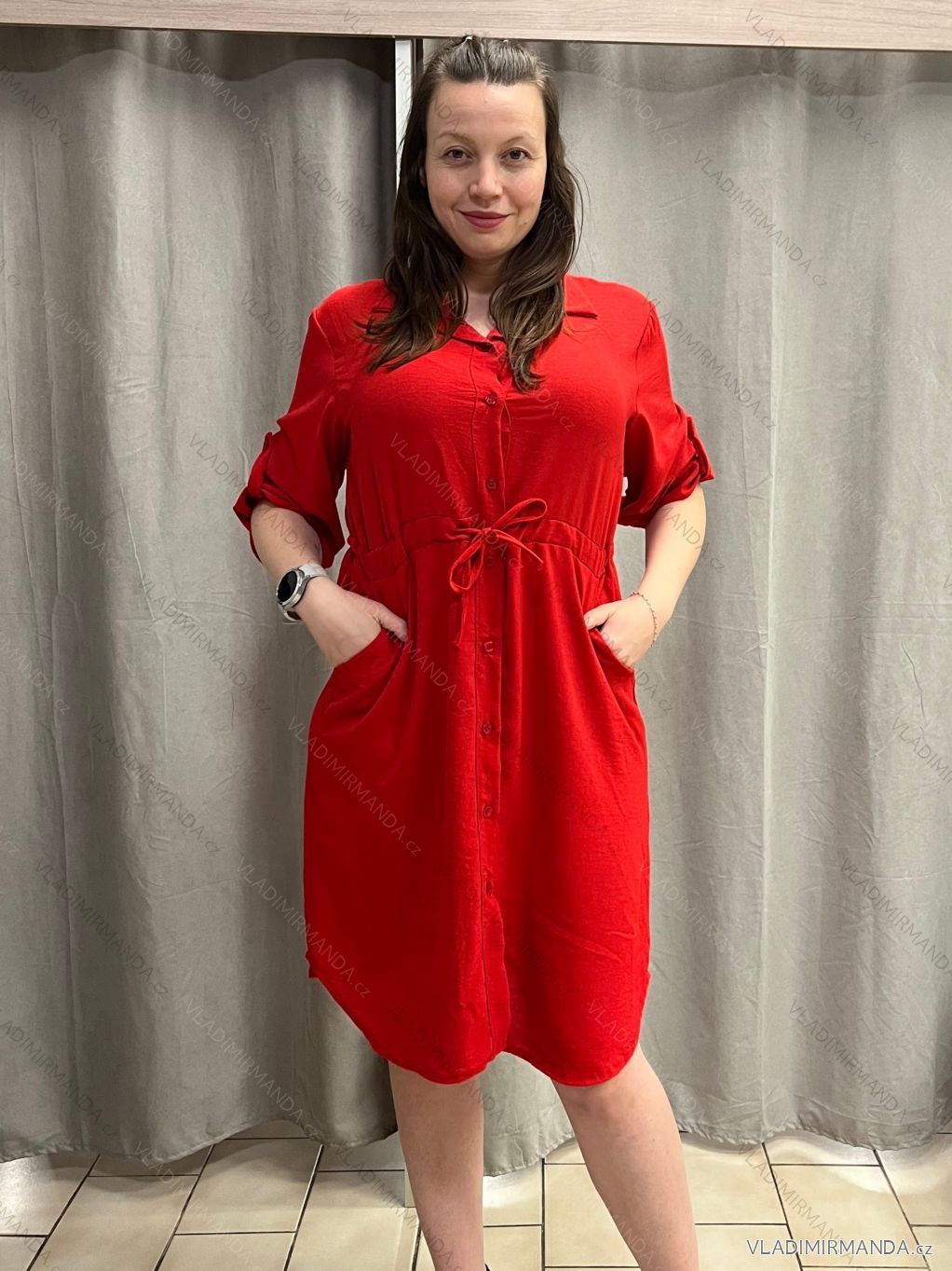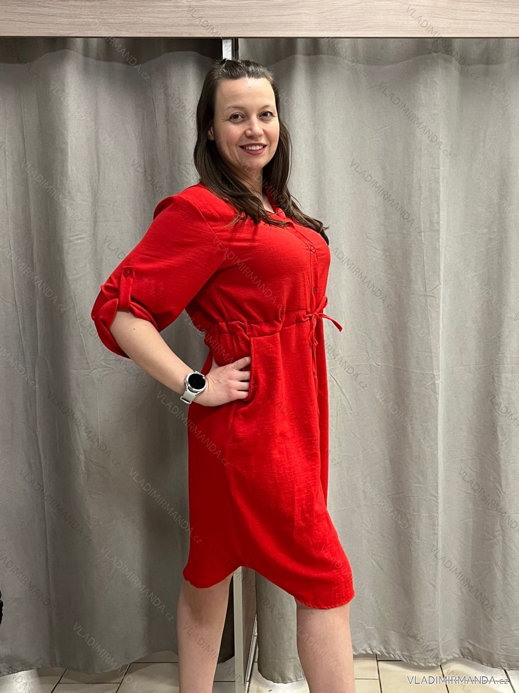 TOVAR (119503) > oblečenie dámske (80843) > šaty (30309) > Šaty nadrozmerné XXL+ pro Boubelky (4265) > (1398) > Šaty košeľové na stáhnutí 3/4 rukáv dámske (M/L/XL ONE SIZE) TALIANSKA MÓDA IM425KIKA/DUR červená L/XL
