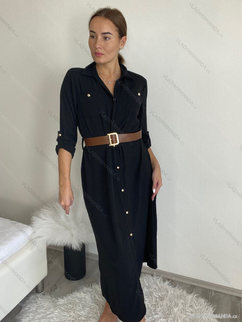 Šaty košeľové s opaskom dlhý rukáv dámske (S/M/L ONE SIZE) TALIANSKA MÓDA IMWB24250