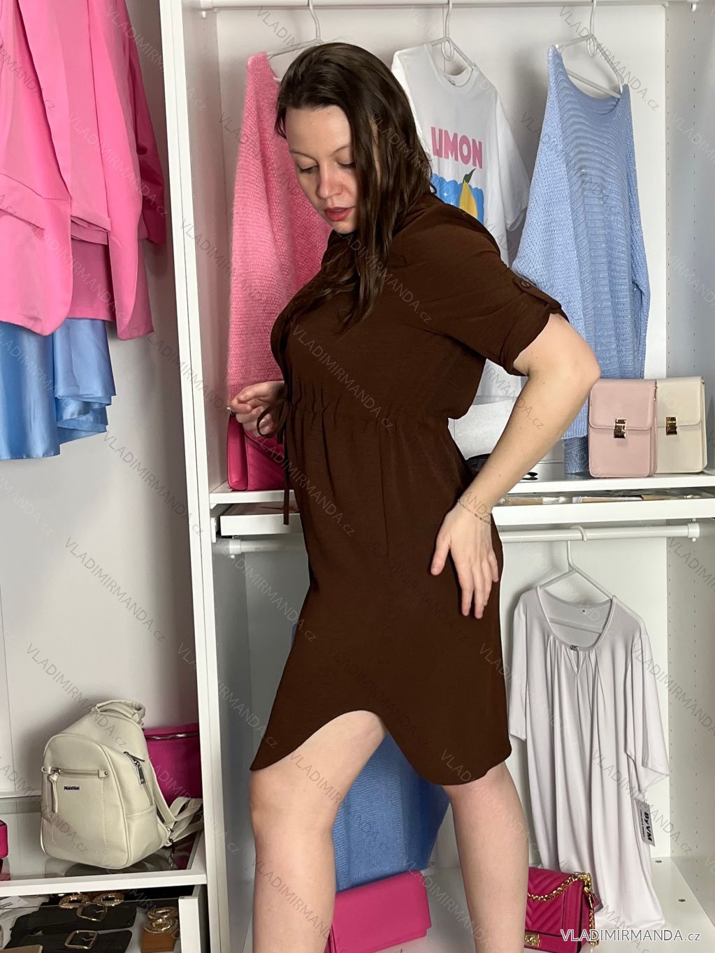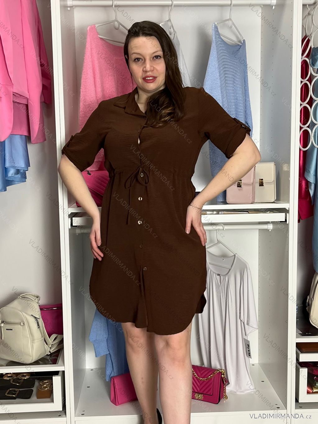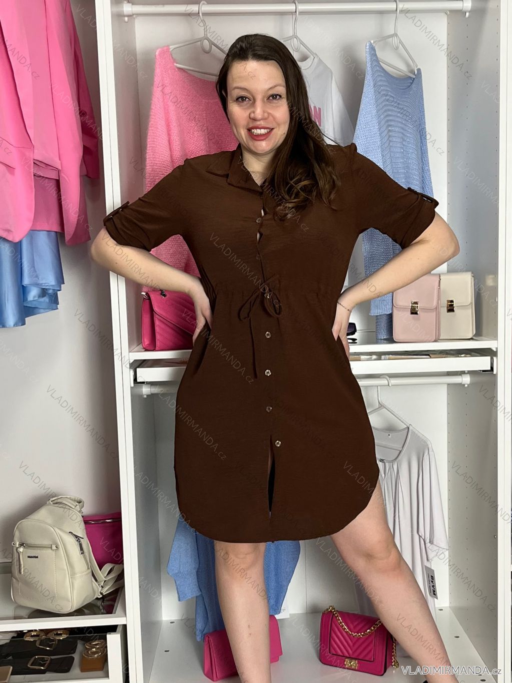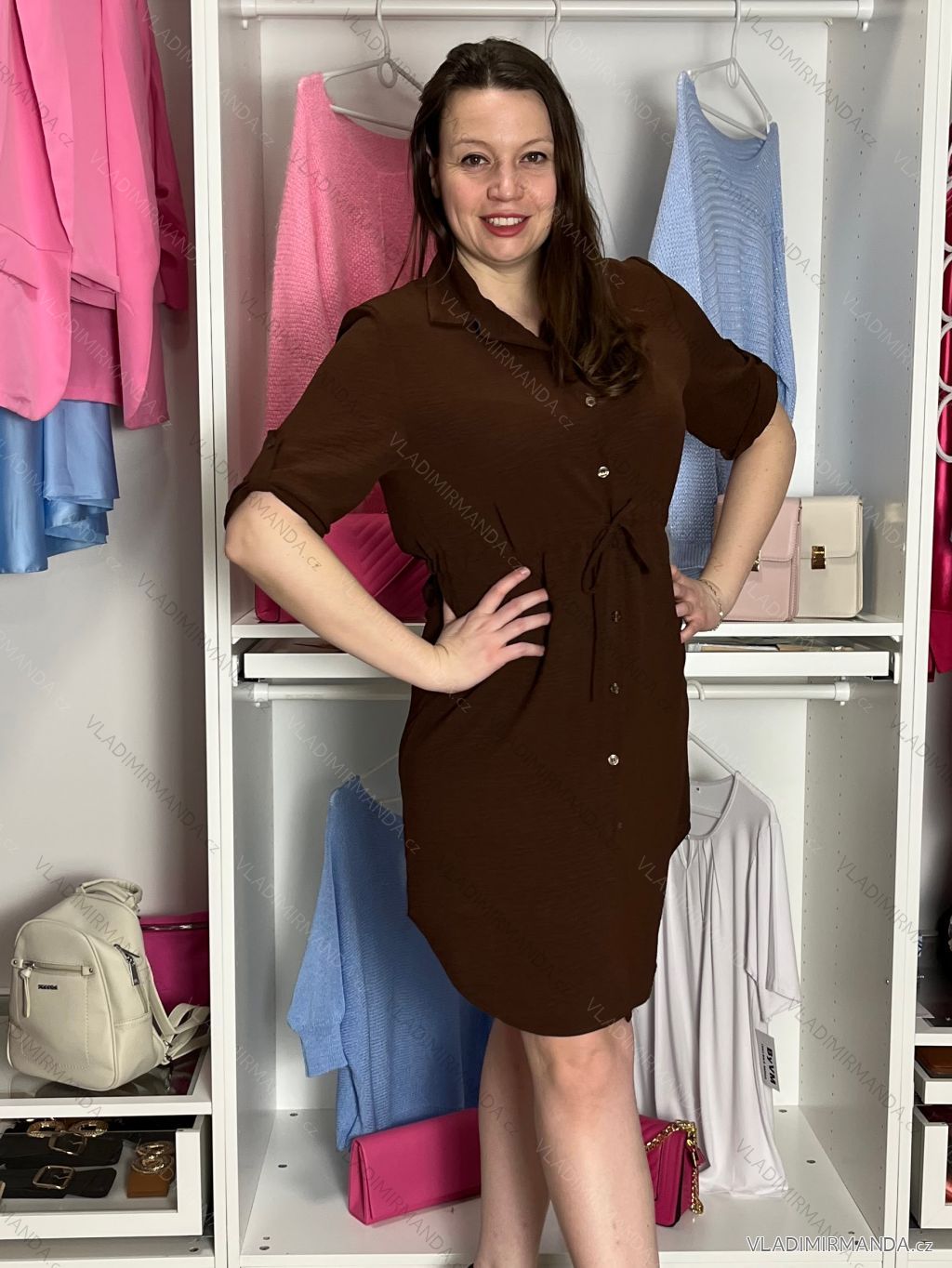 TOVAR (120808) > oblečenie dámske (81890) > šaty (30750) > šaty košeľové (2072) > Šaty košeľové dlhý rukáv (1321) > Šaty košeľové sťahovacie 3/4 dlhý rukáv dámske (S/M/L ONE SIZE) TALIANSKA MÓDA IMSM26072