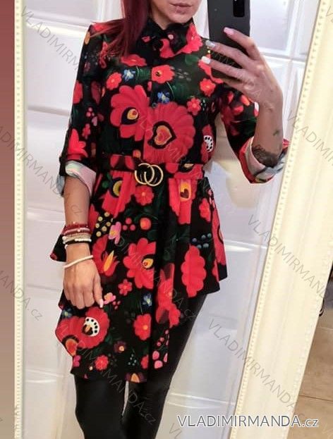 Šaty košilové elegantné dlhý rukáv dámske (S / M ONE SIZE) TALIANSKÁ MÓDA IMM20996