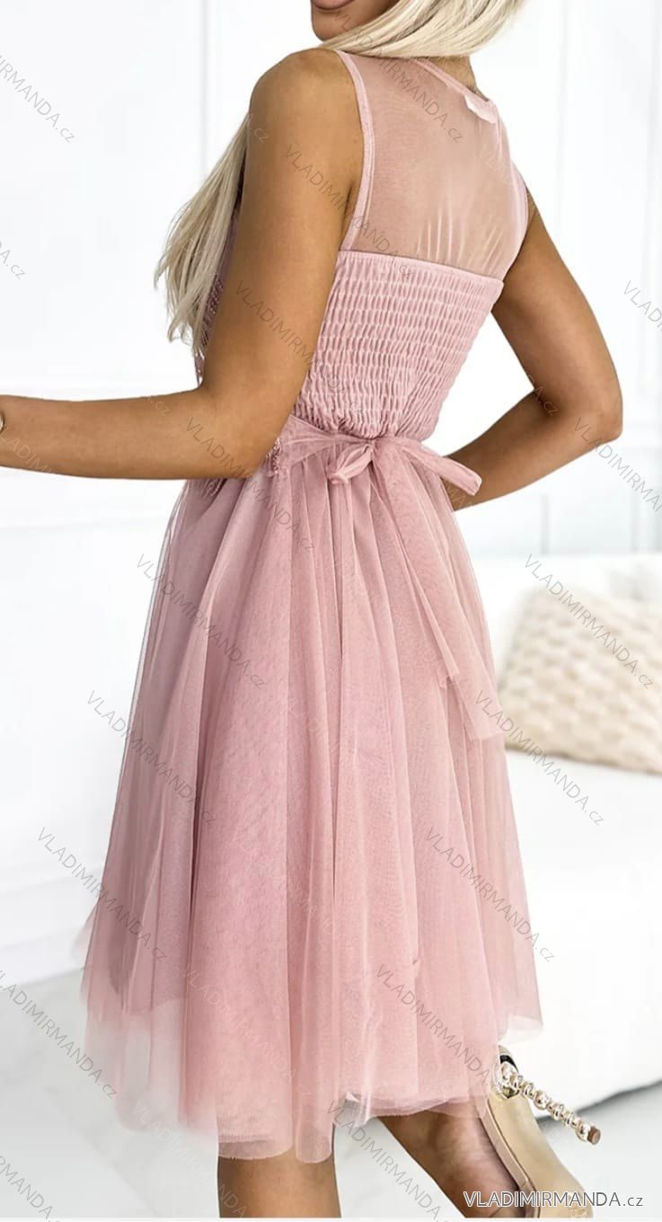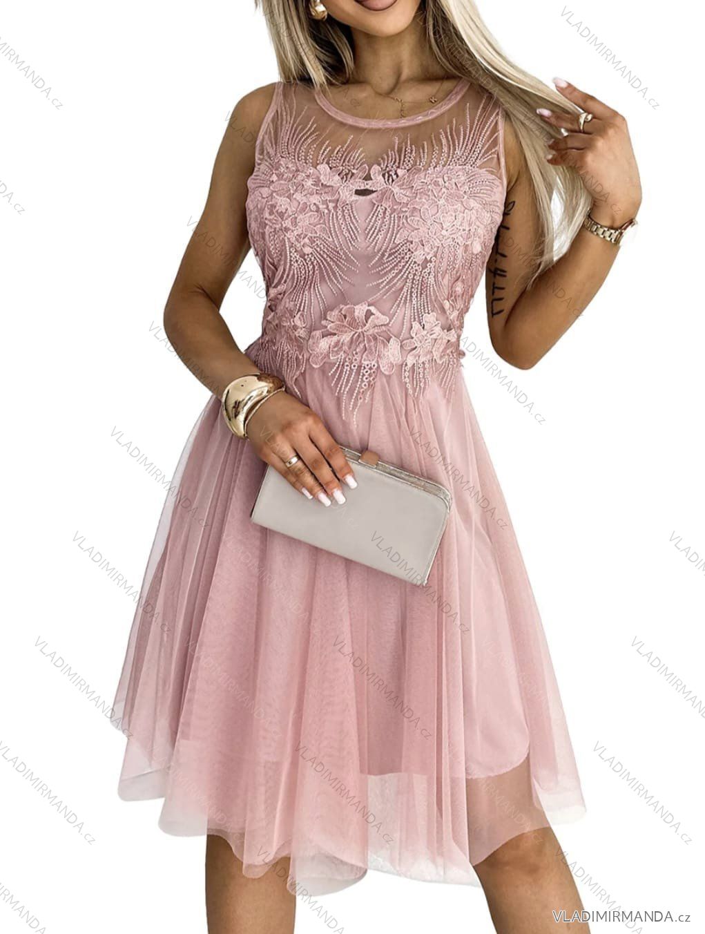 Šaty krajkové spoločenské tylové krátky rukáv dámske (S/M ONE SIZE) TALIANSKA MÓDA IMHMS24257