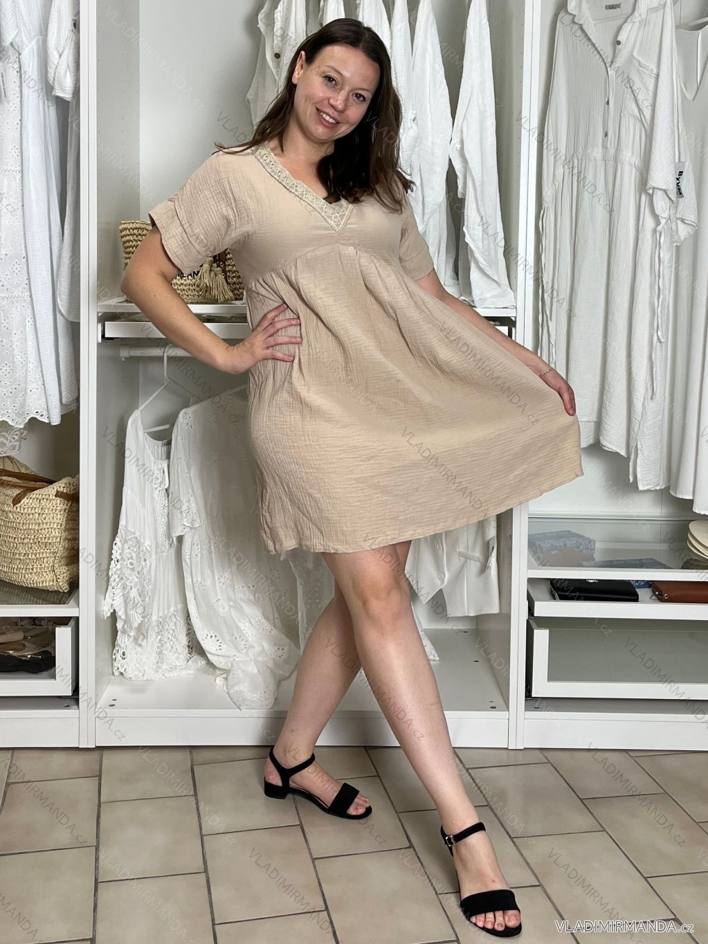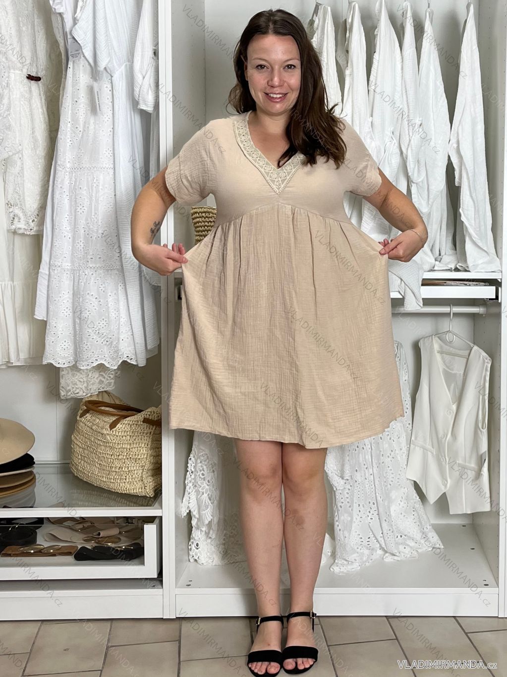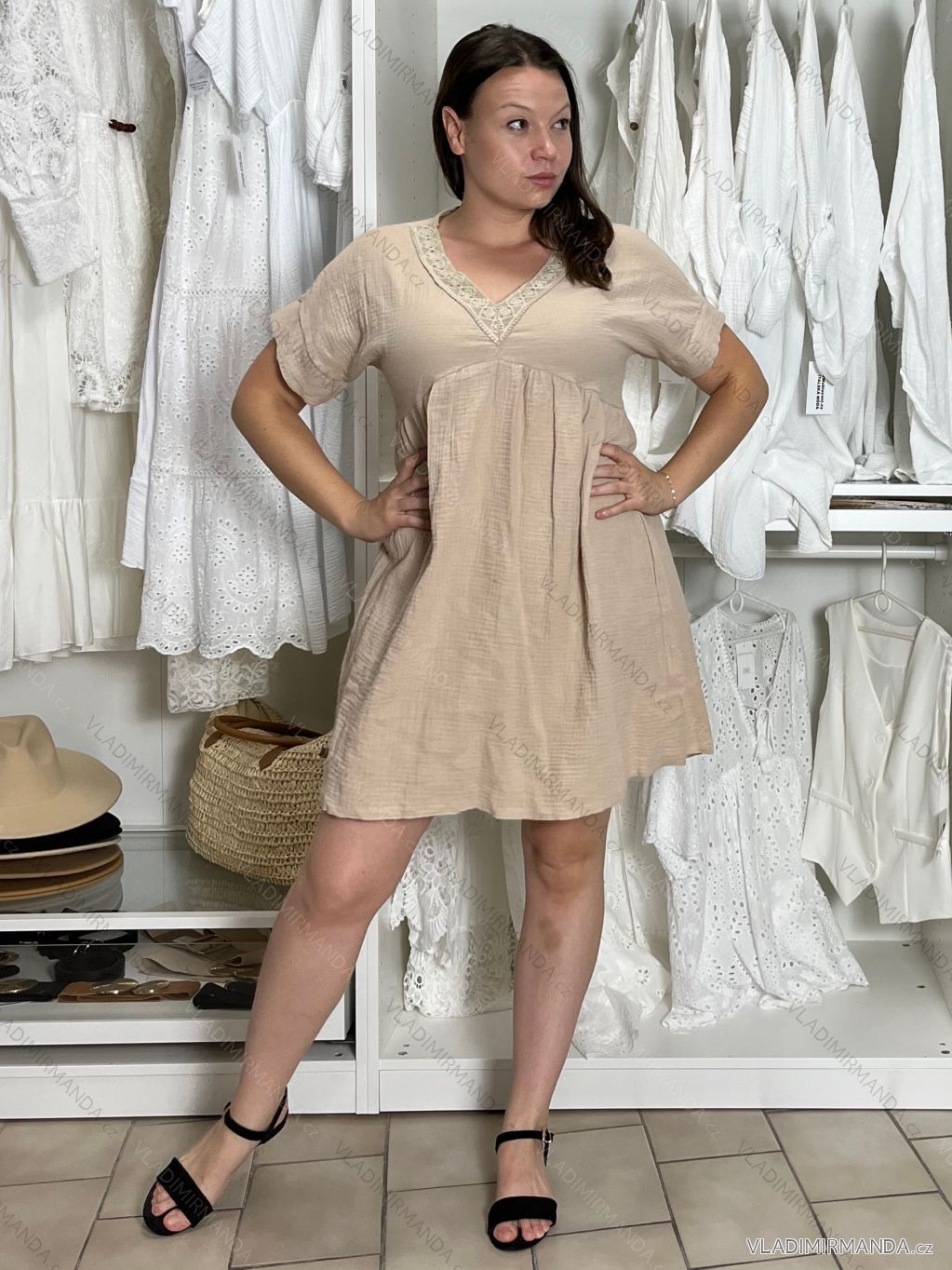 Šaty krátke bavlnené letný mušelín krátky rukáv dámske LOLA (S/M/L ONE SIZE) TALIANSKA MÓDA IMD25041