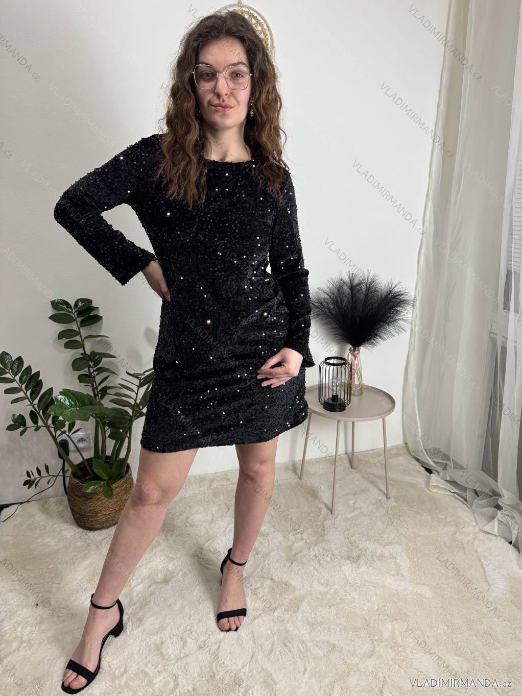 Šaty krátke elegantné flitrové dlhý rukáv dámske (S/M/L ONE SIZE) TALIANSKA MÓDA IMD25365