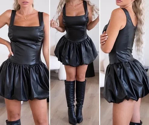 TOVAR (125033) > oblečenie dámske (81706) > šaty (30866) > šaty koženkové (123) > Šaty krátke kožené na ramienka dámske (S/M/L ONE SIZE) TALIANSKA MÓDA IMPMD2437220