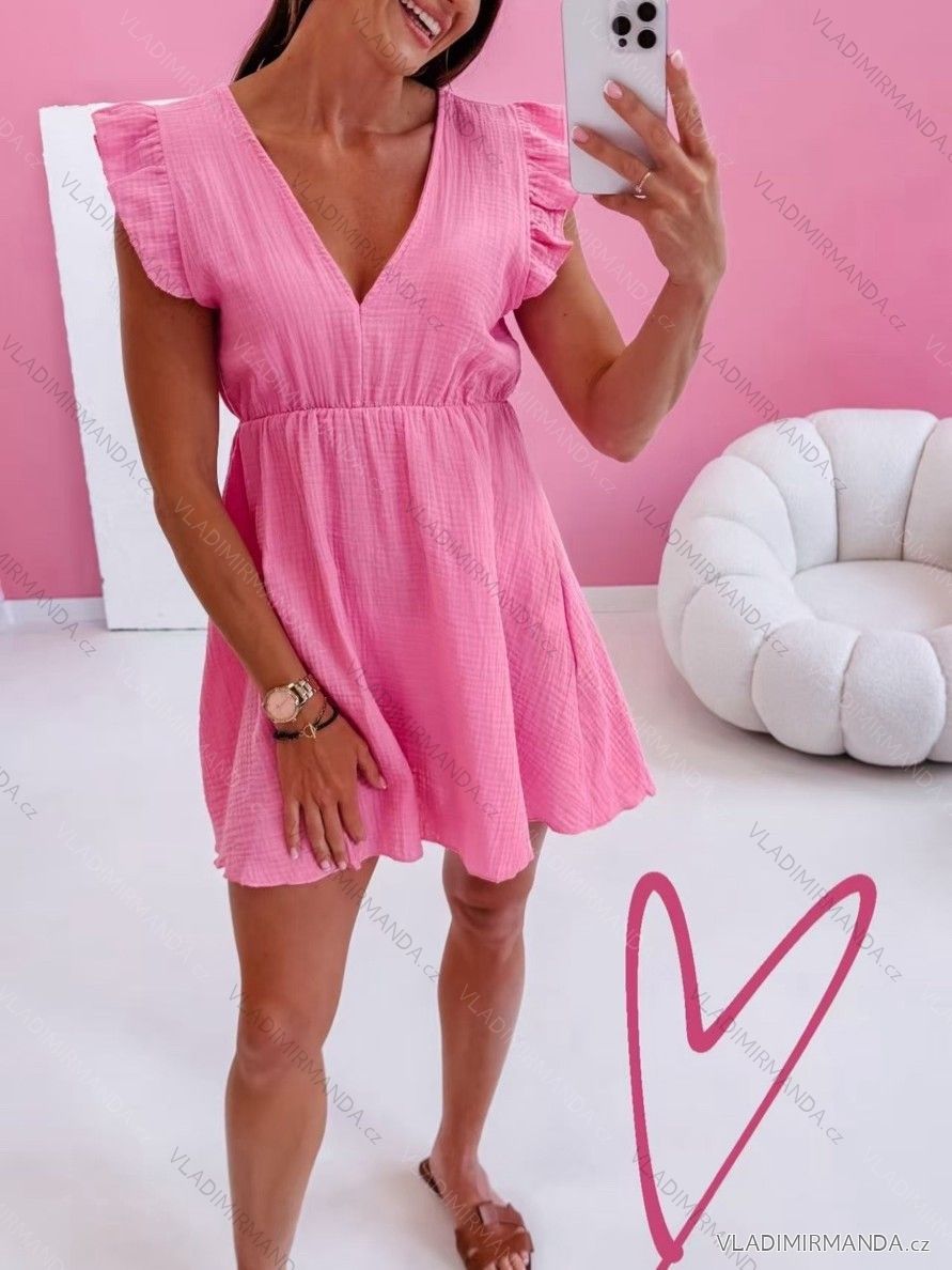 Šaty krátke letné mušelínové krátky rukáv dámske (XS/S/M ONE SIZE) TALIANSKA MÓDA IMWGS251701