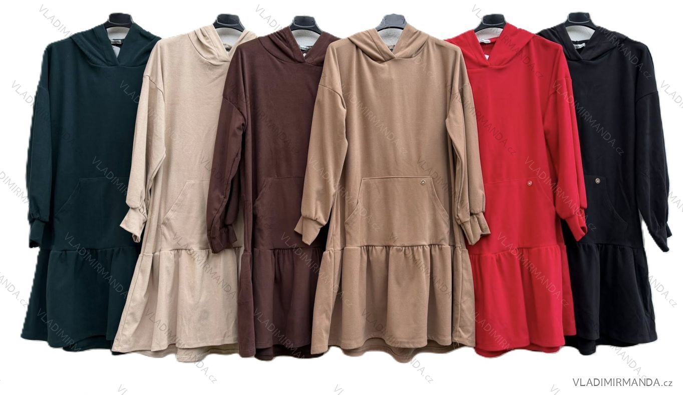 Šaty krátke mikinové dlhý rukáv dámske nadrozmer (48/50/52 ONE SIZE) TALIANSKA MÓDA IMD25226