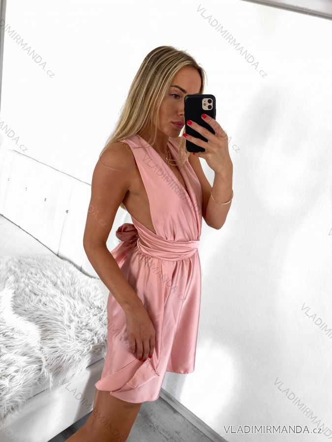 TOVAR (120214) > oblečenie dámske (81435) > šaty (30622) > Šaty krátke saténové na ramienka variabilné zaväzovanie dámske (S/M ONE SIZE) TALIANSKA MÓDA IMWKK231964