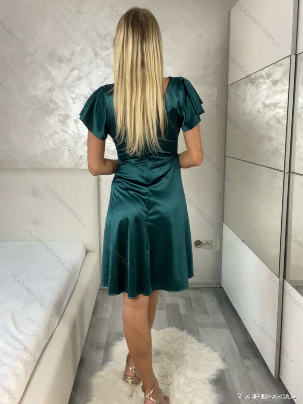 Šaty krátke saténové spoločenské krátky rukáv dámske (S/M/L ONE SIZE) TALIANSKA MÓDA IM3251118