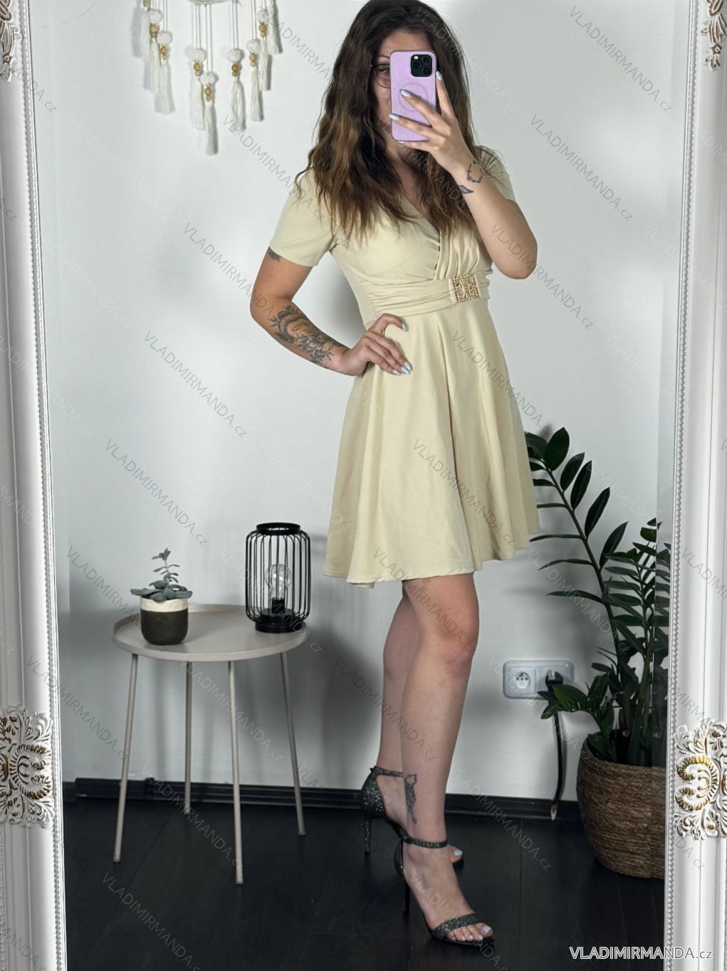 Šaty krátke spoločenské krátky rukáv dámske (S/M ONE SIZE) TALIANSKA MÓDA IMM249260