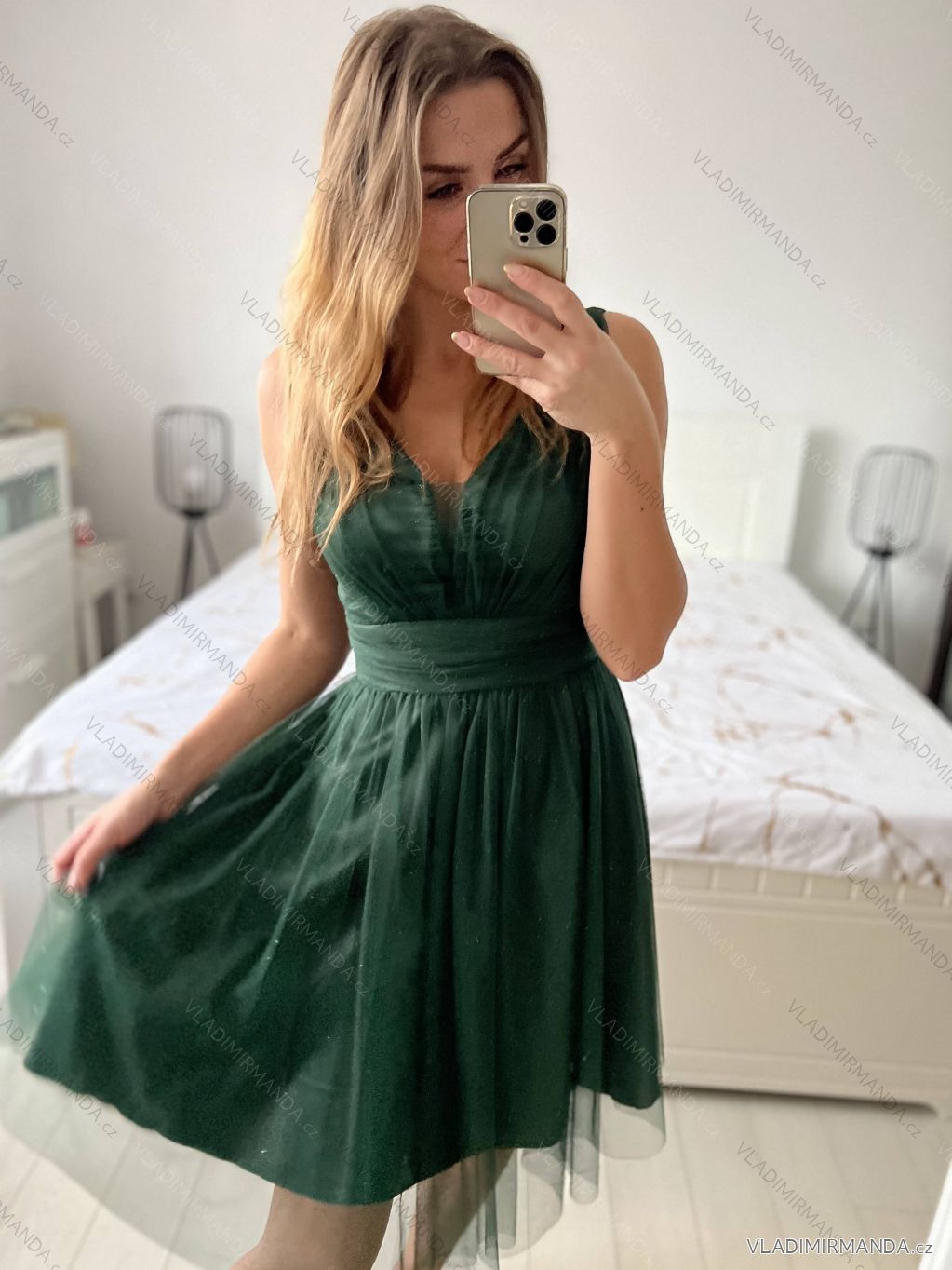 Šaty krátke spoločenské na ramienka dámske (S/M ONE SIZE) TALIANSKA MÓDA IMPSH24C662 tmavo zelená S/M