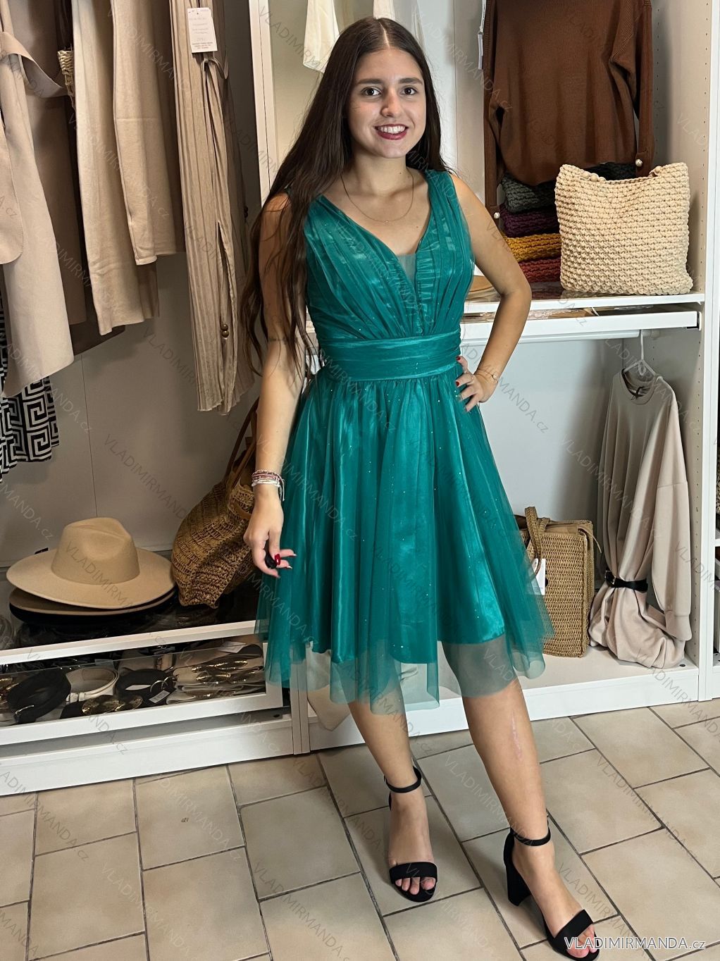TOVAR (120706) > oblečenie dámske (82146) > šaty (31067) > šaty elegantné (8565) > Šaty krátke spoločenské trblietavé na ramienka dámske (S/M ONE SIZE) TALIANSKA MÓDA IMC24462/DUR tmavo modrá S/M/L