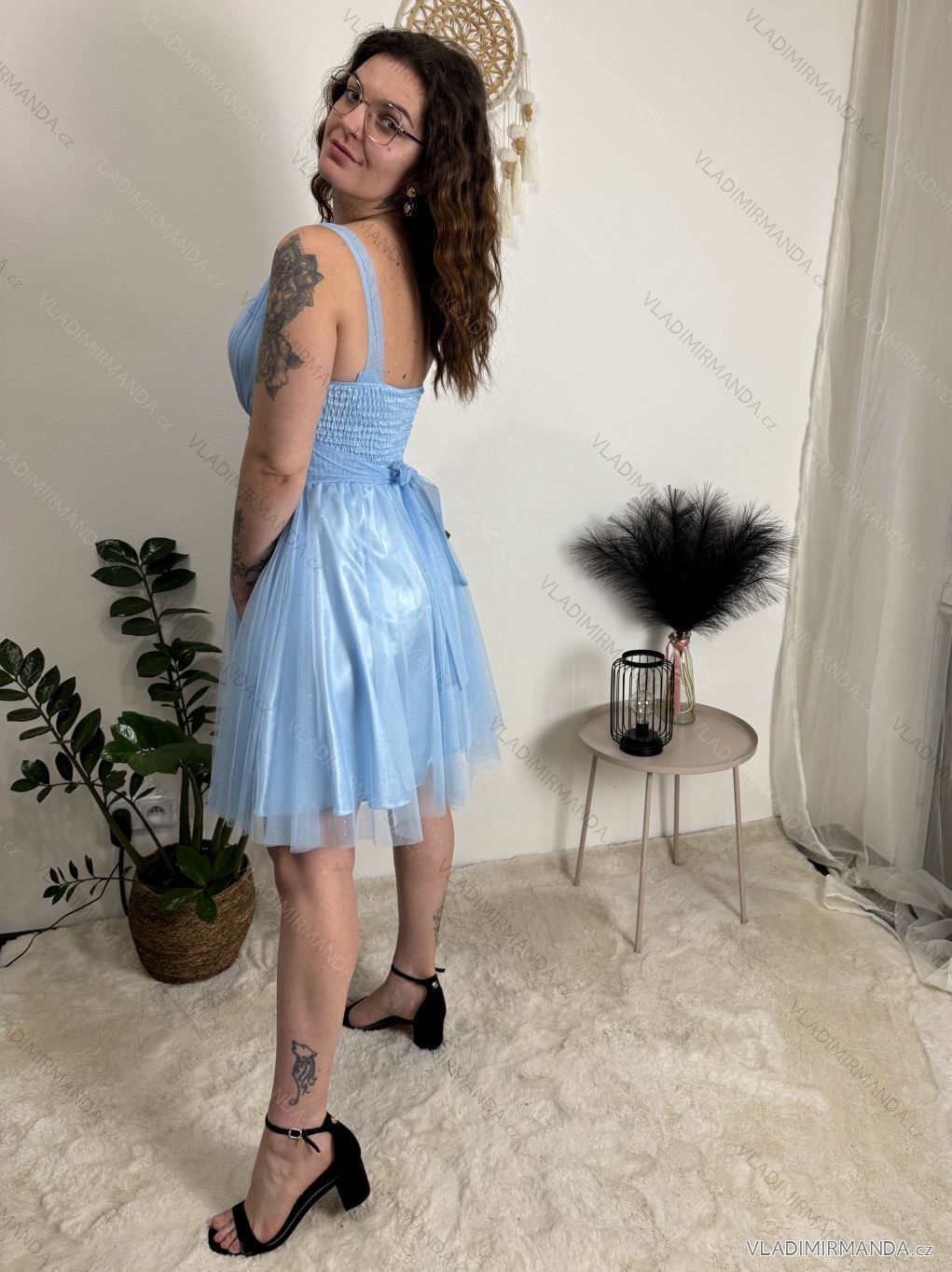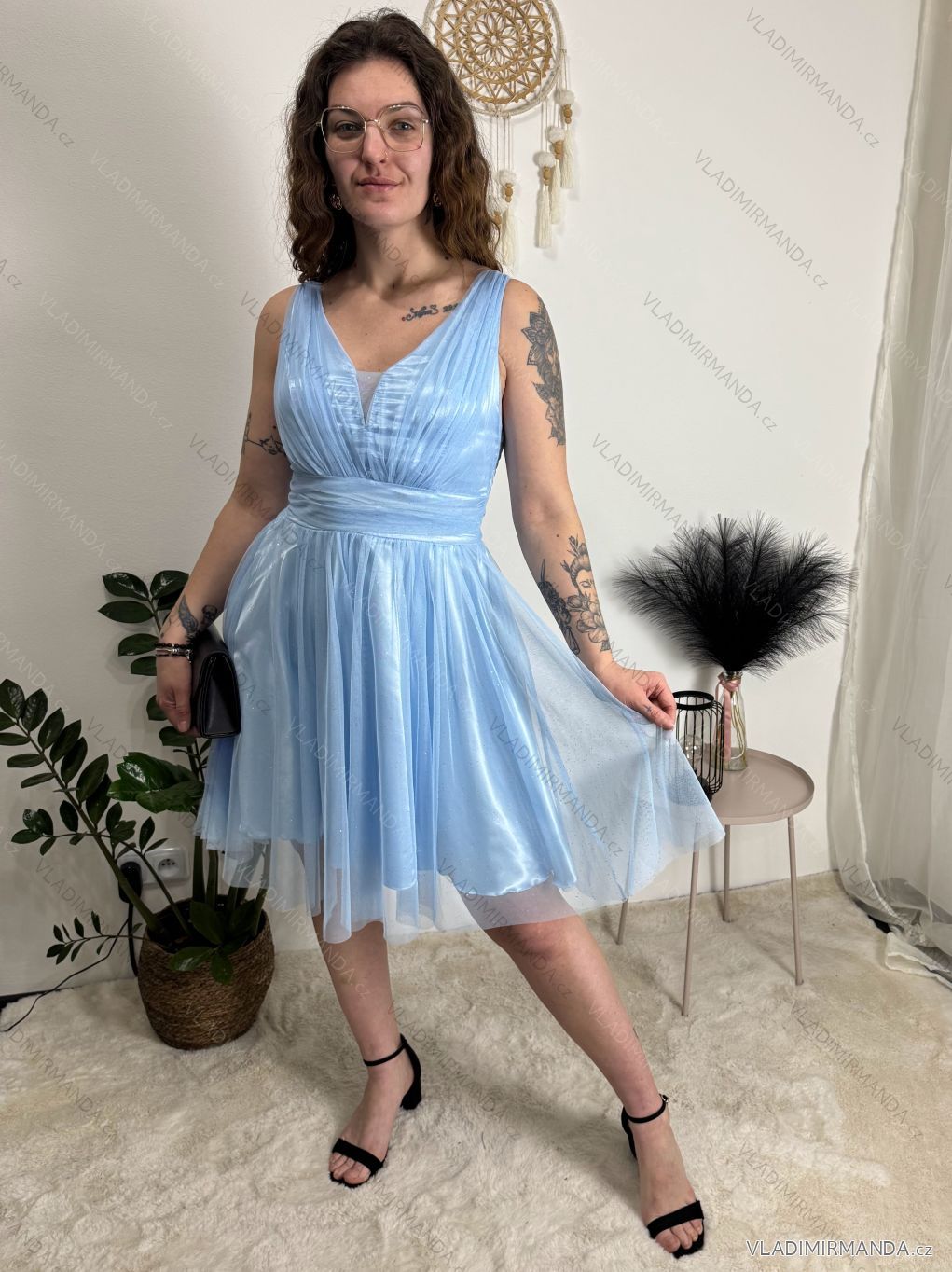 TOVAR (120852) > oblečenie dámske (81919) > šaty (30765) > Šaty spoločenské (5035) > Šaty plesové krátke (1335) > Šaty krátke spoločenské trblietavé na ramienka dámske (S/M ONE SIZE) TALIANSKA MÓDA IMC24462/DUR tmavo modrá S/M/L