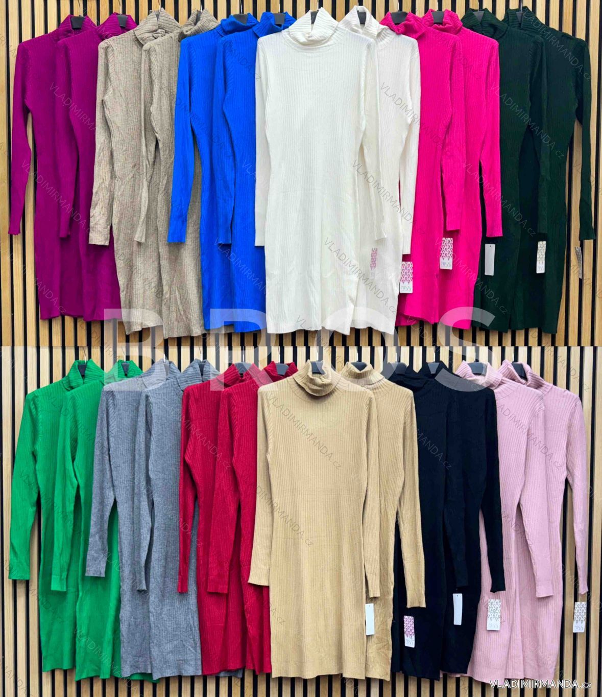 Šaty krátke úpletové s rolákom dlhý rukáv dámske (S/M/L ONE SIZE) TALIANSKA MÓDA IMWGB25001