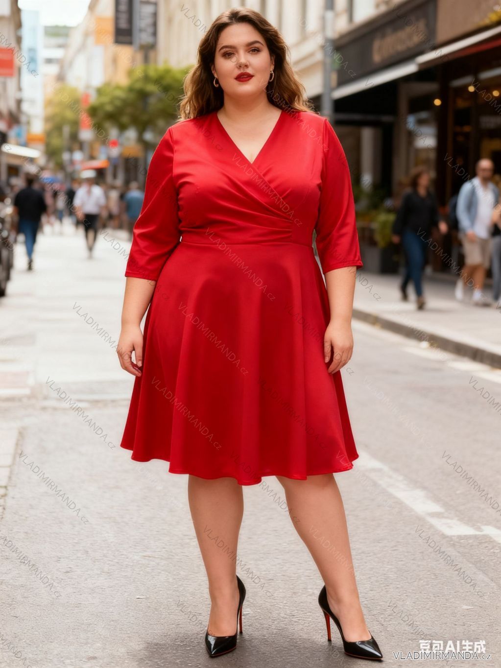 TOVAR (120518) > oblečenie dámske (81625) > šaty (30668) > Šaty nadrozmerné XXL+ pro Boubelky (4408) > (1449) > Šaty krátke vianočné 3/4 dlhý rukáv dámske nadrozmer (46/48/50 ONE SIZE) TALIANSKA MÓDA IM425881