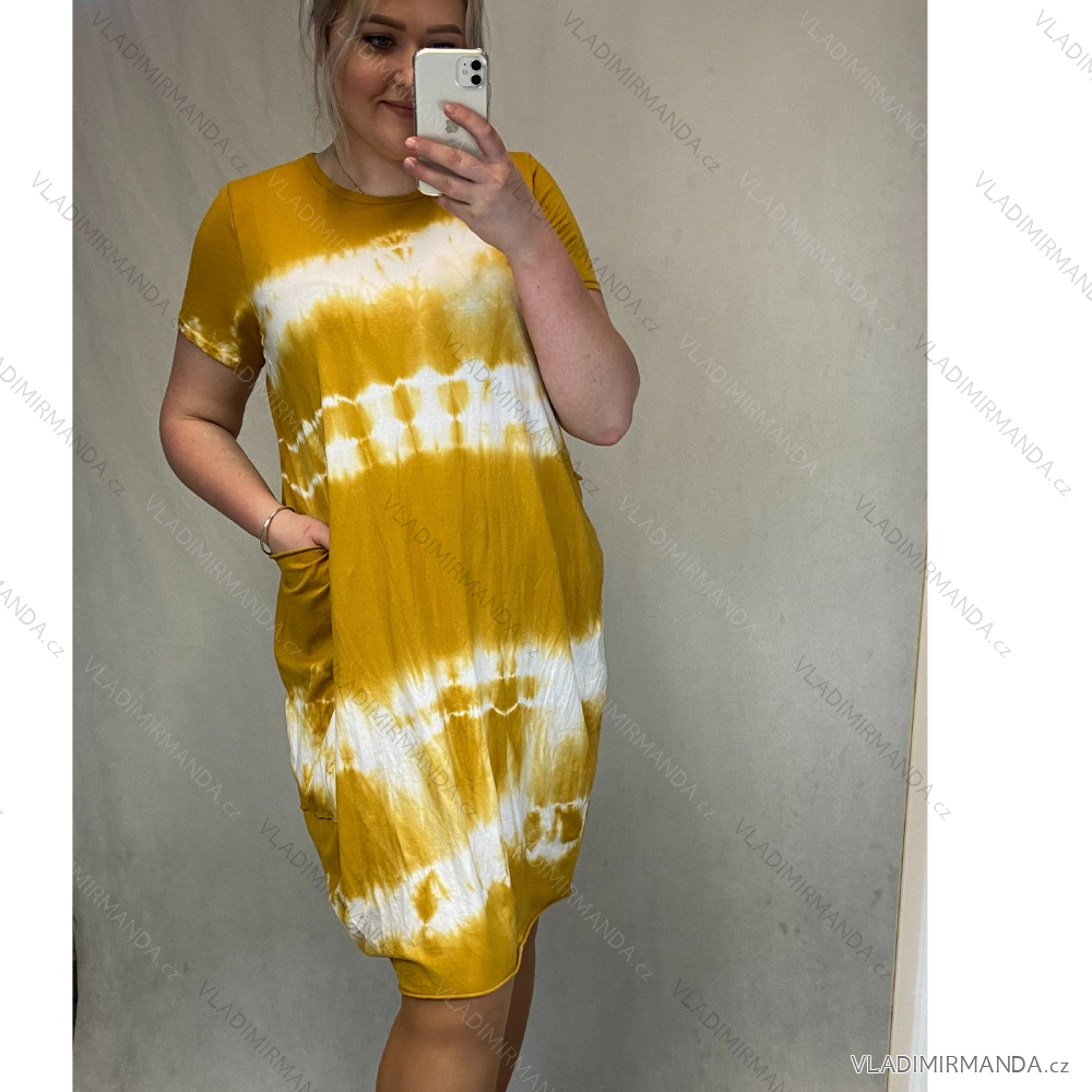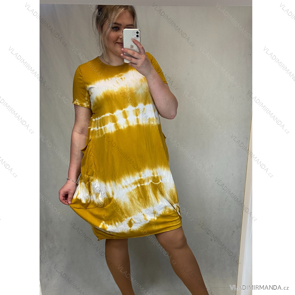 Šaty krátky rukáv dámske nadrozmerné (UNI XL-2XL) TALIANSKÁ MÓDA IMN20084 / DR XL / XXL béžová
