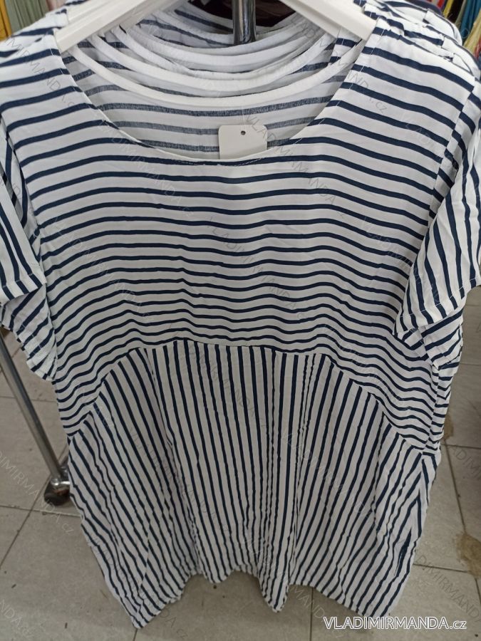 Šaty krátky rukáv nadrozměr dámske prúžok (XL / 2XL ONE SIZE) TALIANSKÁ MÓDA IM721190