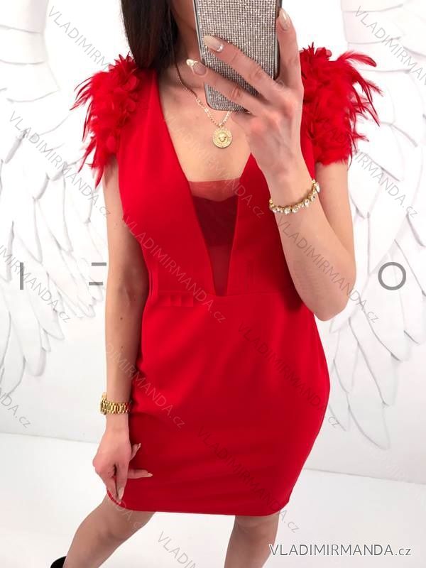 Šaty krátky rukáv s pierkami krátke dámske (uni sl) TALIANSKÁ MÓDA IM918017