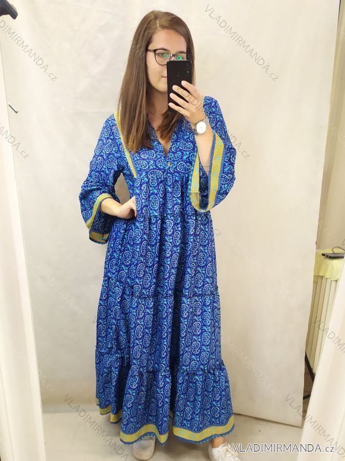 Šaty letné boho španielske krátky rukáv dámska nadrozmer (XL/2XL ONE SIZE) TALIANSKA MóDA IM4225394/DR L / XL kráľovská modrá
