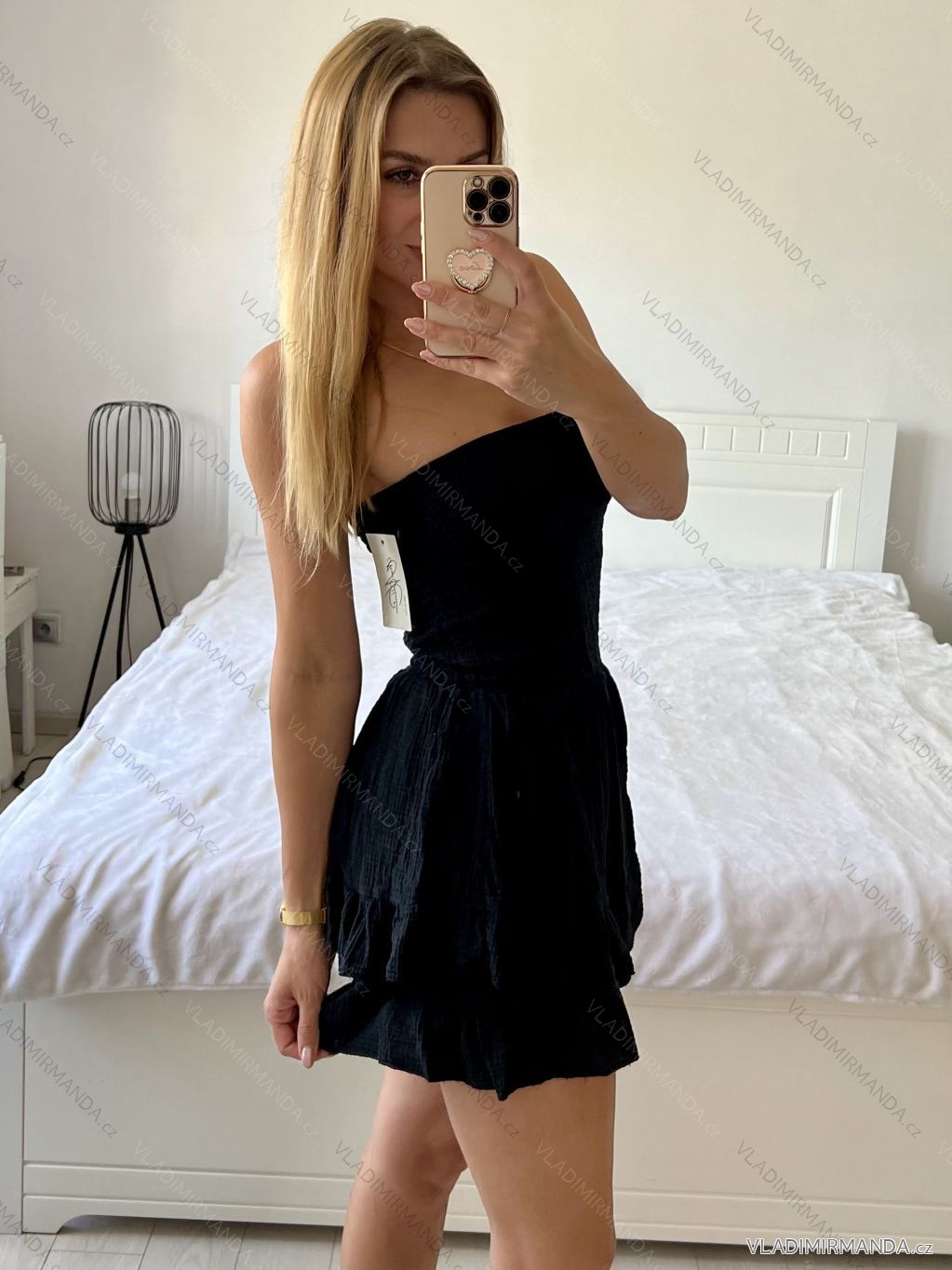 Šaty letní carmen mušelín dámské (S/M ONE SIZE) ITALSKÁ MÓDA IMWGS24068/DU - čierna - S / M