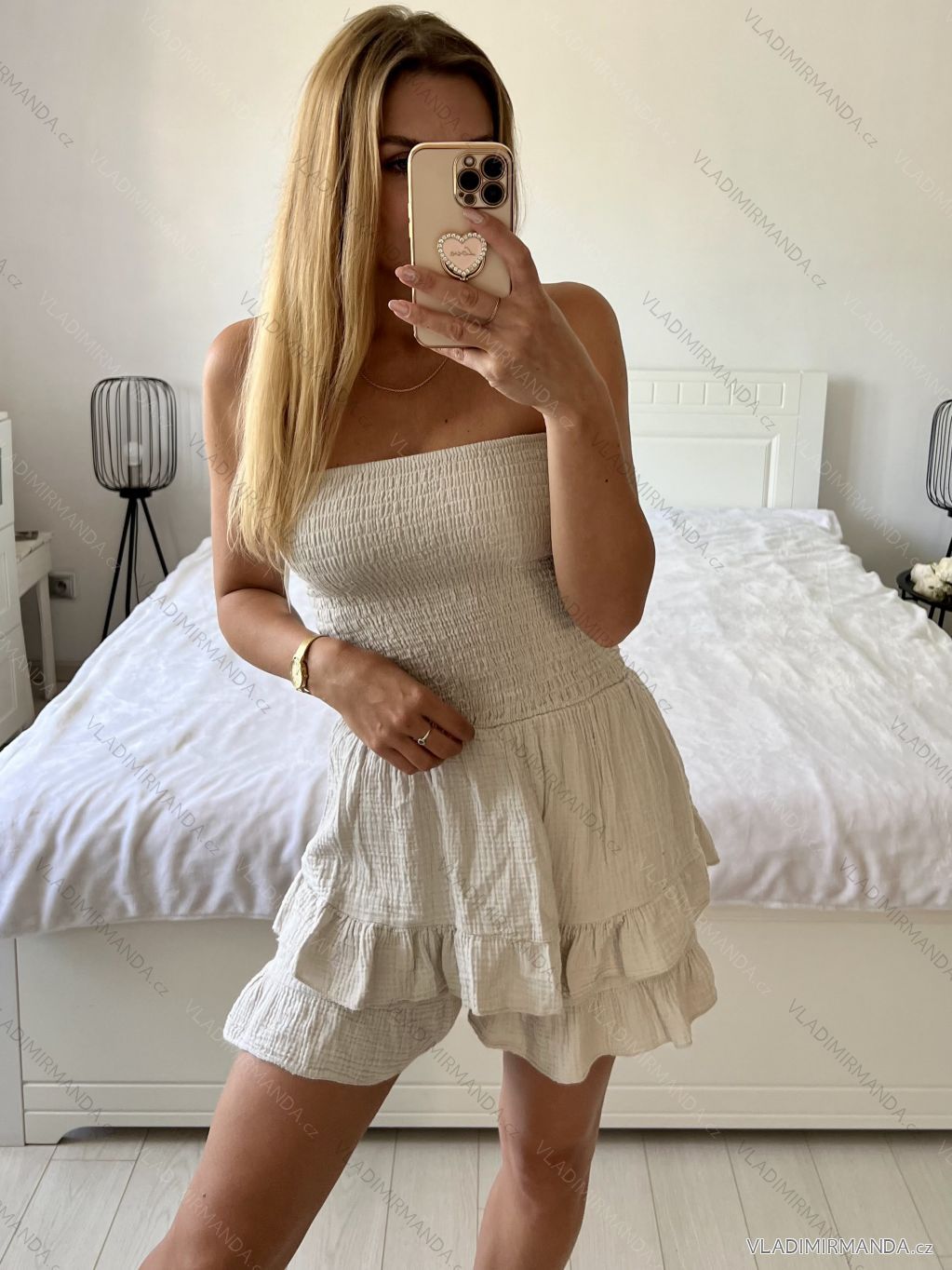 Krátke letné mušelínové šaty bez rukávov, so žabičkovaním cez prsia a všitými kraťaskami