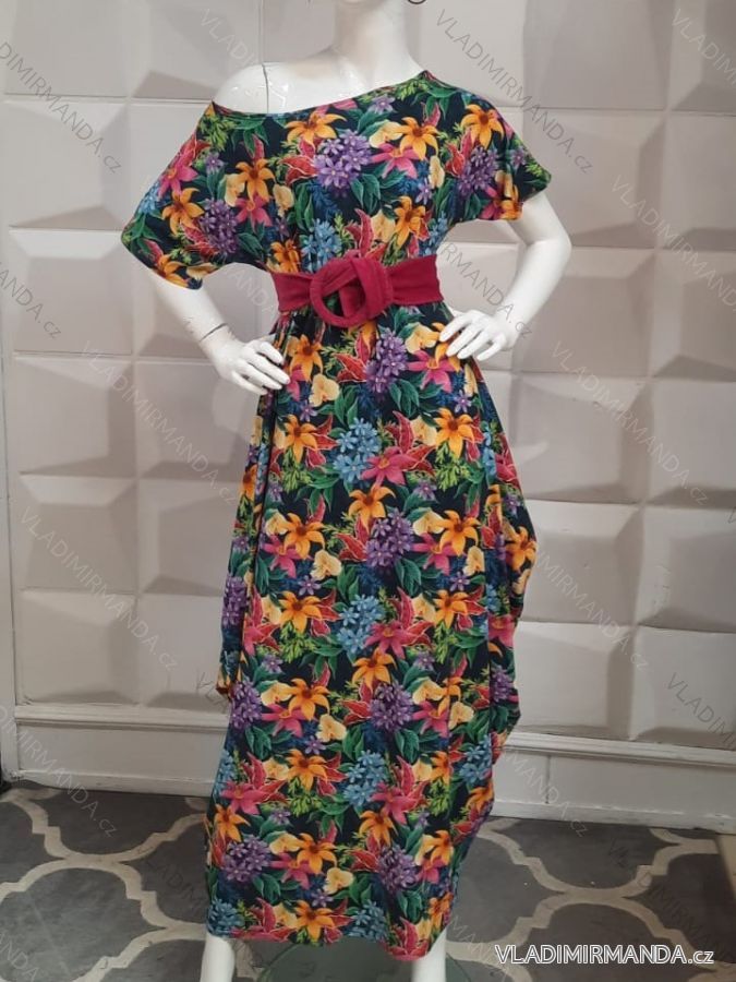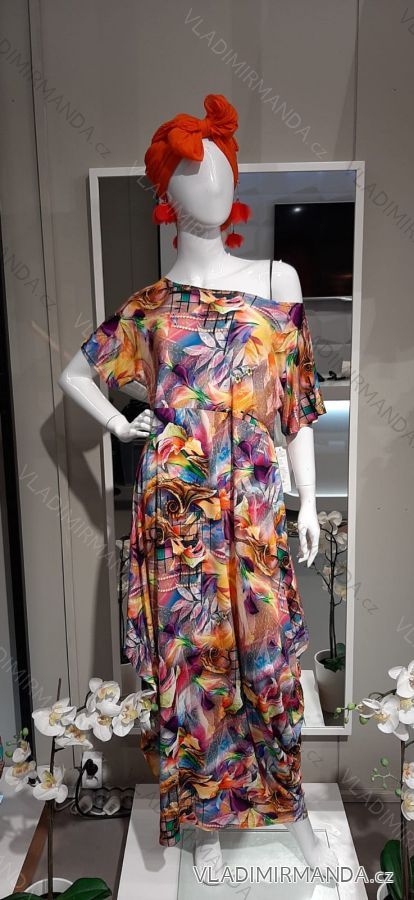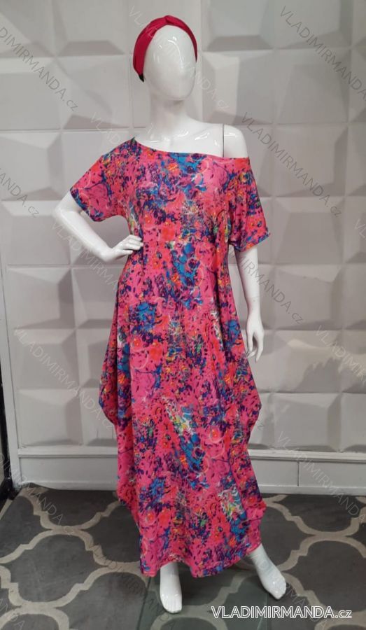 Šaty letné dlhé krátky rukáv dámske nadrozmer (XL/2XL/3XL ONE SIZE) POLSKÁ MÓDA PMLT22MASTI