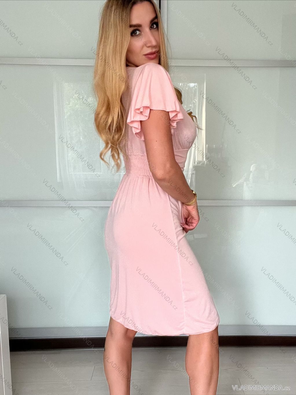 Letní šaty s volánkovými rukávy.