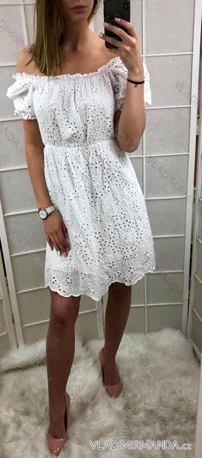 Šaty letné krátke krátky rukáv odhalené ramená dámske (uni s / m) TALIANSKÁ MÓDA IM919482