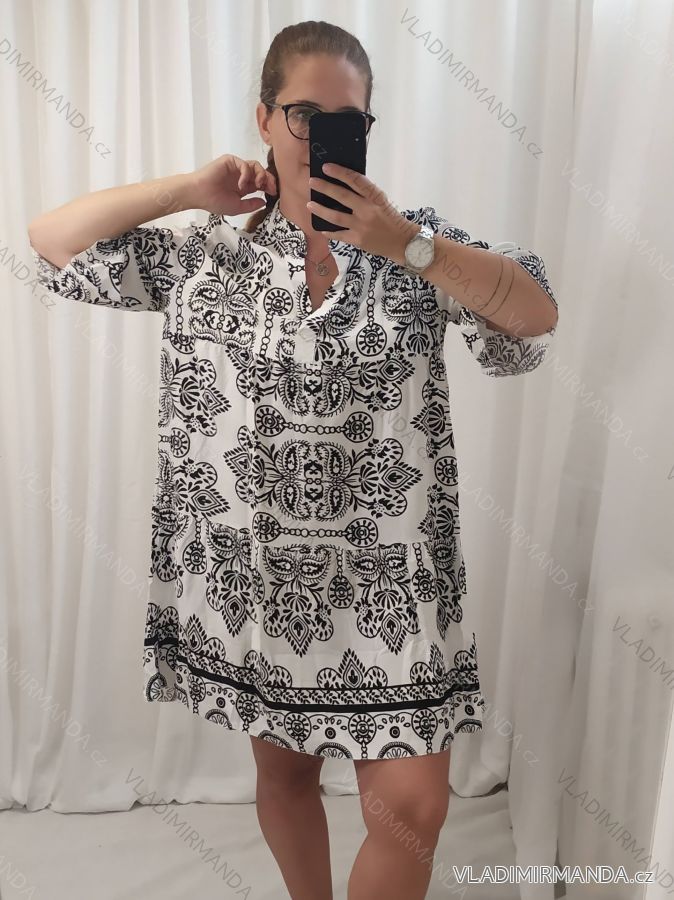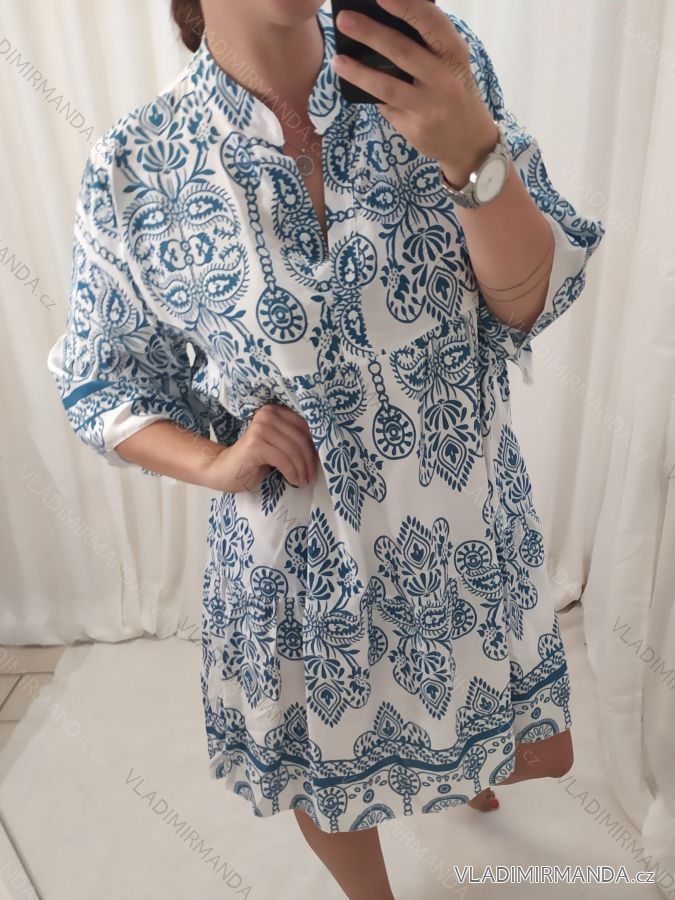 Šaty letné krátky rukáv dámska (M/L/XL ONE SIZE) TALIANSKA MÓDA IMP16822ORNA/DR L / XL modrá svetlá