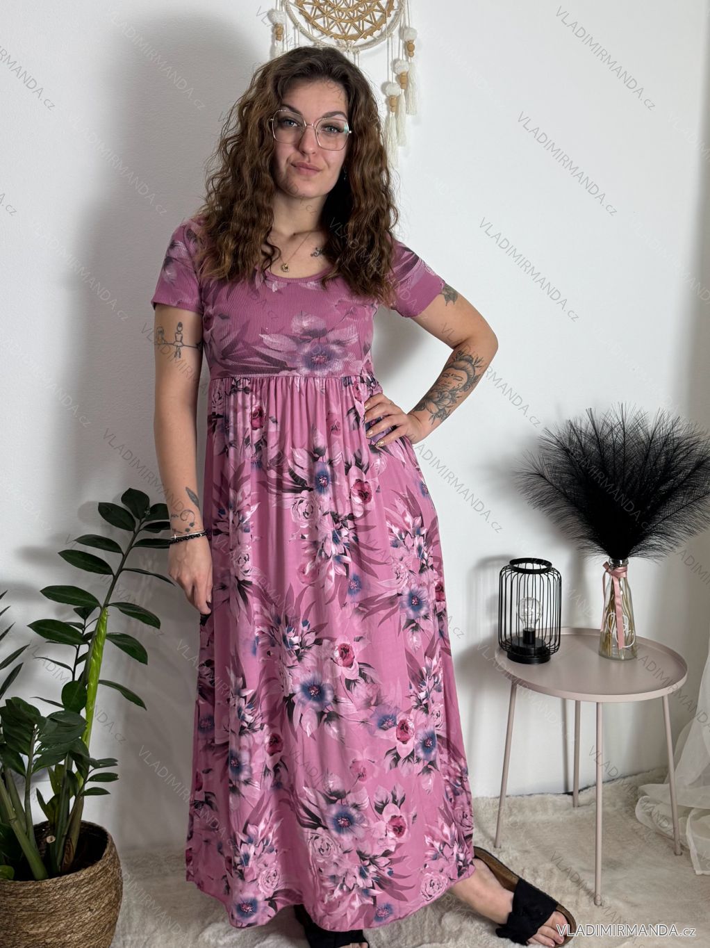 Šaty letné krátky rukáv dámske FLORA (S/M/L ONE SIZE) TALIANSKA MÓDA IMSM25019-1/DUR ružová S/M/L