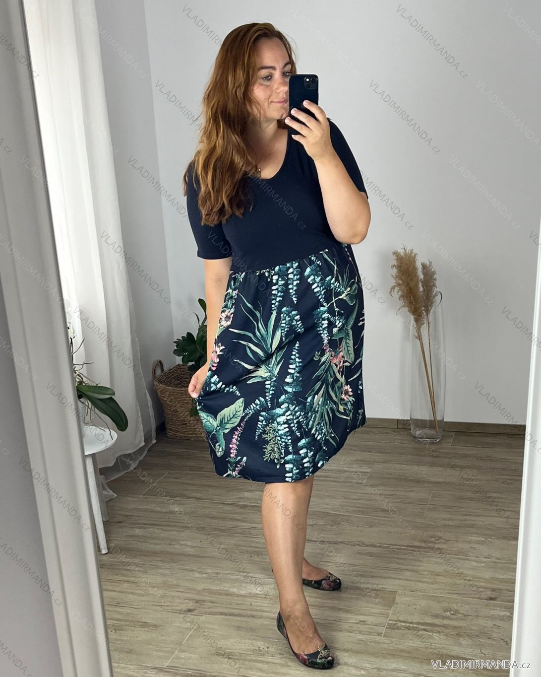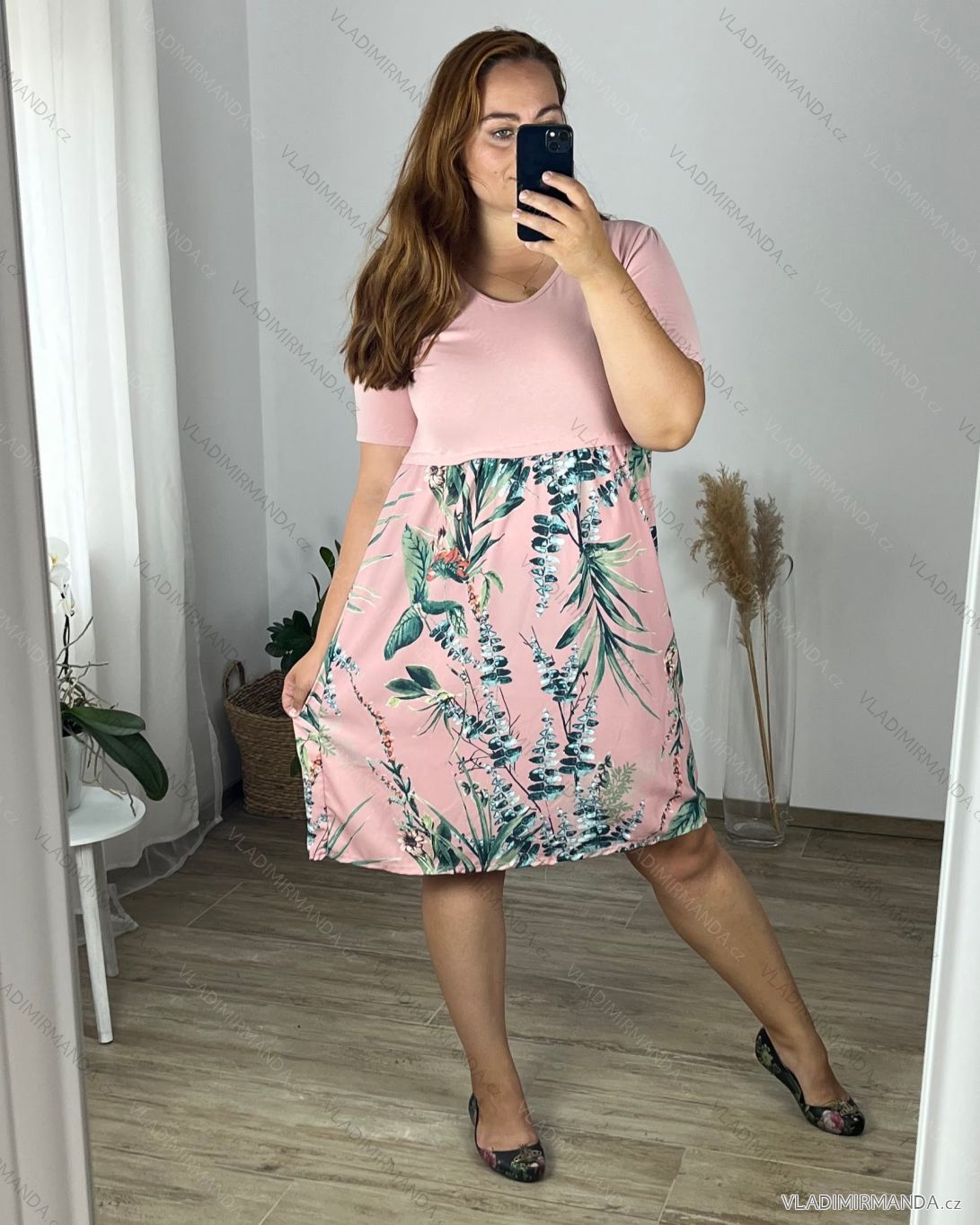 Šaty letné krátky rukáv dámske nadrozmer (42/44/46 ONE SIZE) TALIANSKA MÓDA IM424364/DR 46/48 tmavo ružová