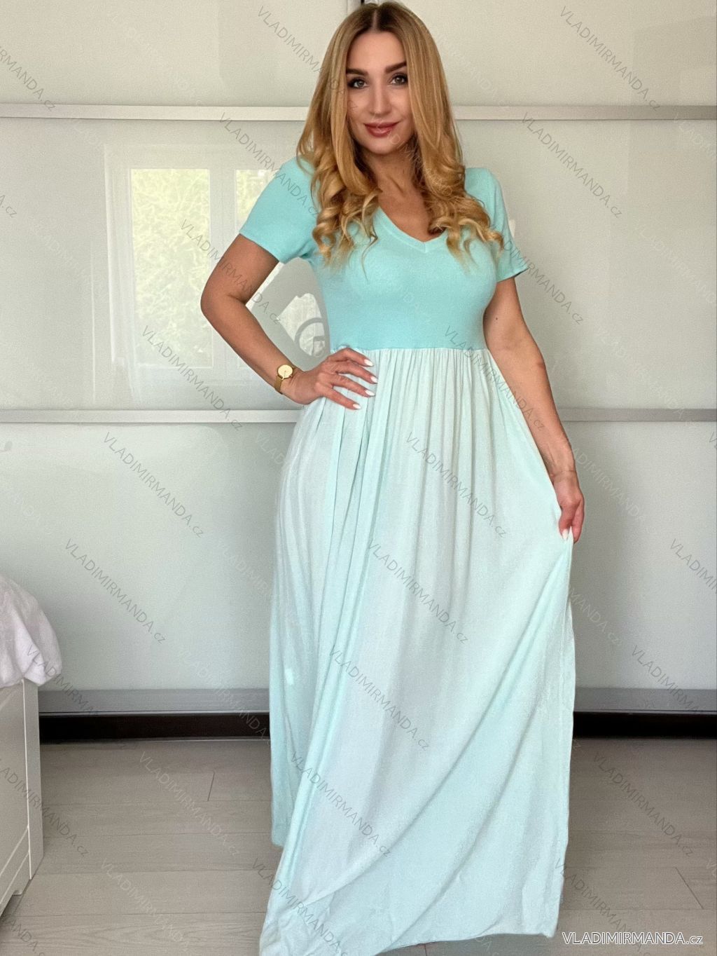 Šaty letné krátky rukáv dámske (S/M/L ONE SIZE) TALIANSKA MÓDA IMSM25013/DU - svetlo modrá - S/M/L
