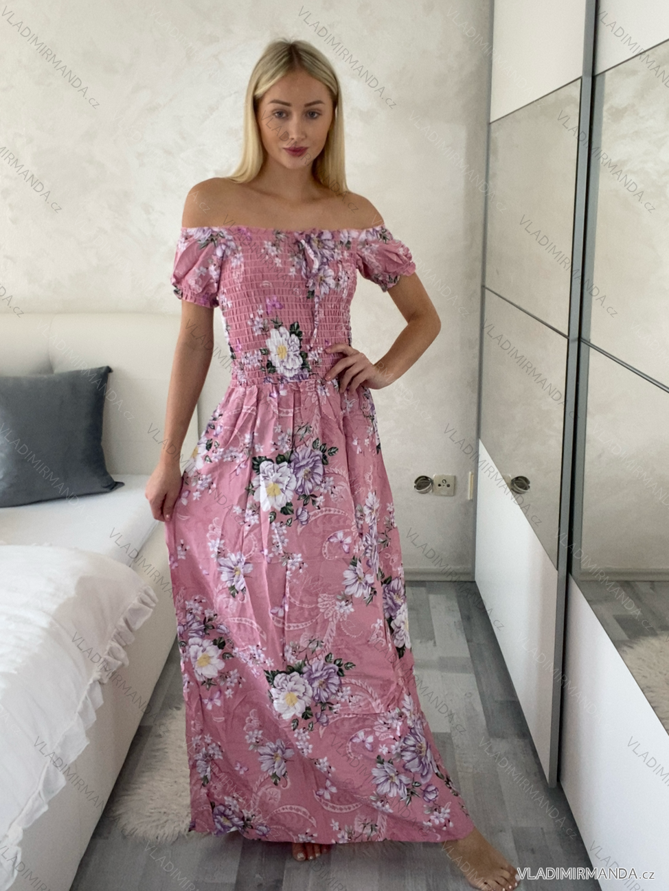 Šaty letné kvetinové carmen krátky rukáv dámske CARMEN (M/L-XL/2XL) IMWGDB2123/DUR - čierna - M / L