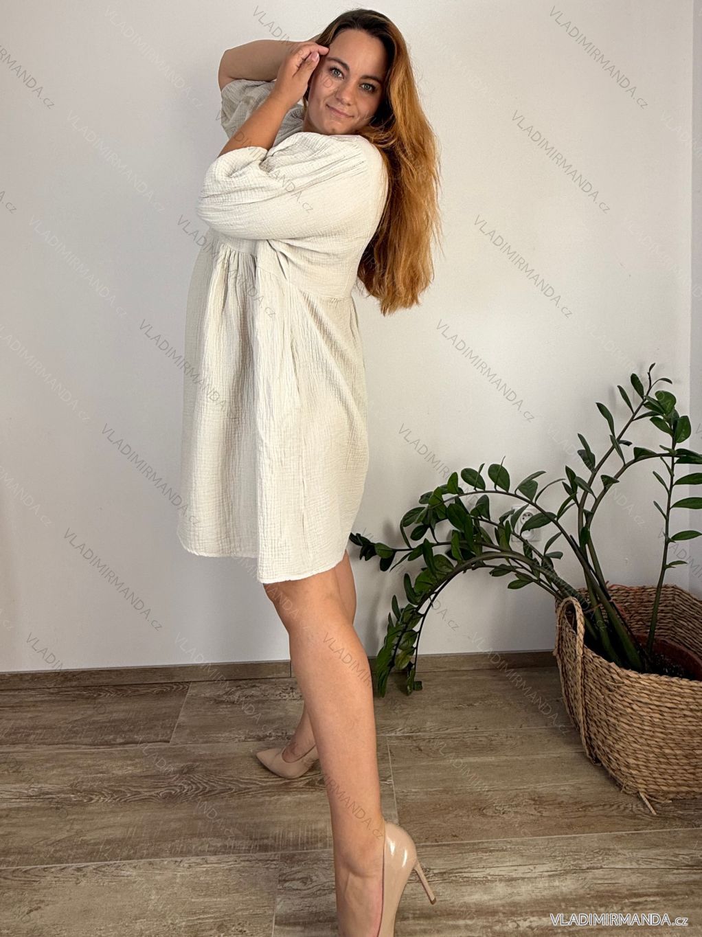 TOVAR (120029) > oblečenie dámske (81295) > šaty (30591) > Šaty letné mušelínové 3/4 dlhý rukáv dámske nadrozměr (46/48/50 ONE SIZE) TALIANSKA MÓDA IMPEM25XA281/DUR 46/48/50 svetlo modrá