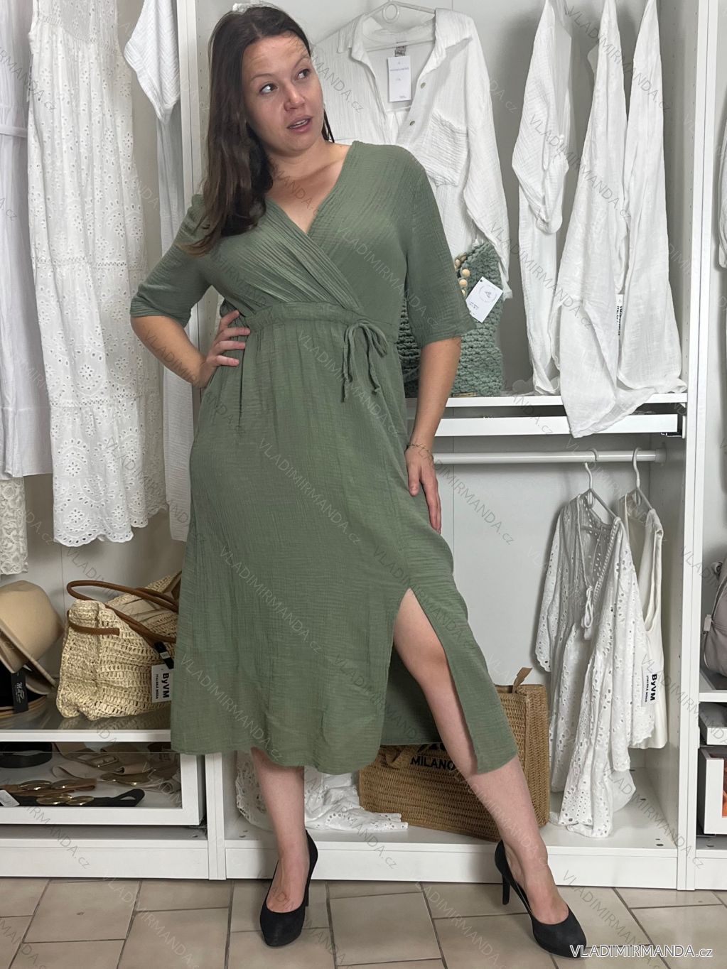 TOVAR (120811) > oblečenie dámske (81893) > šaty (30754) > Šaty letné mušelínové krátky rukáv dámske JANET (S/M/L ONE SIZE) TALIANSKA MÓDA IMWGS232579/DU M / L zelená khaki