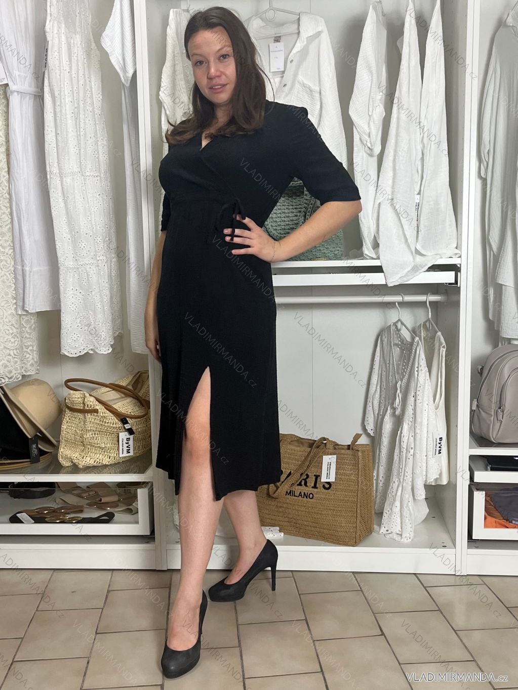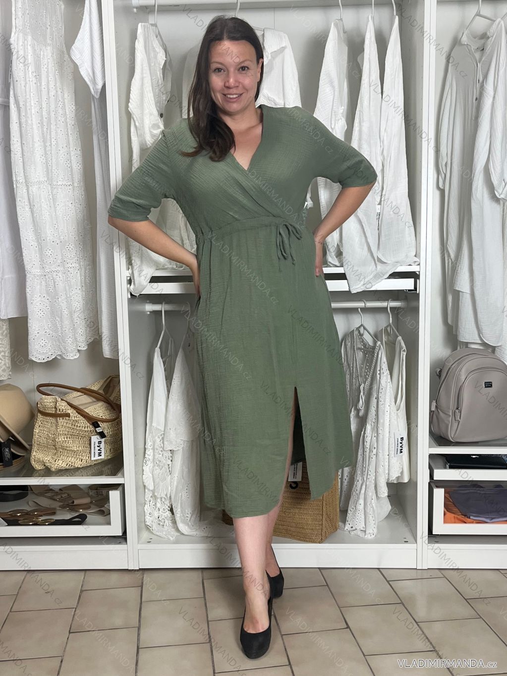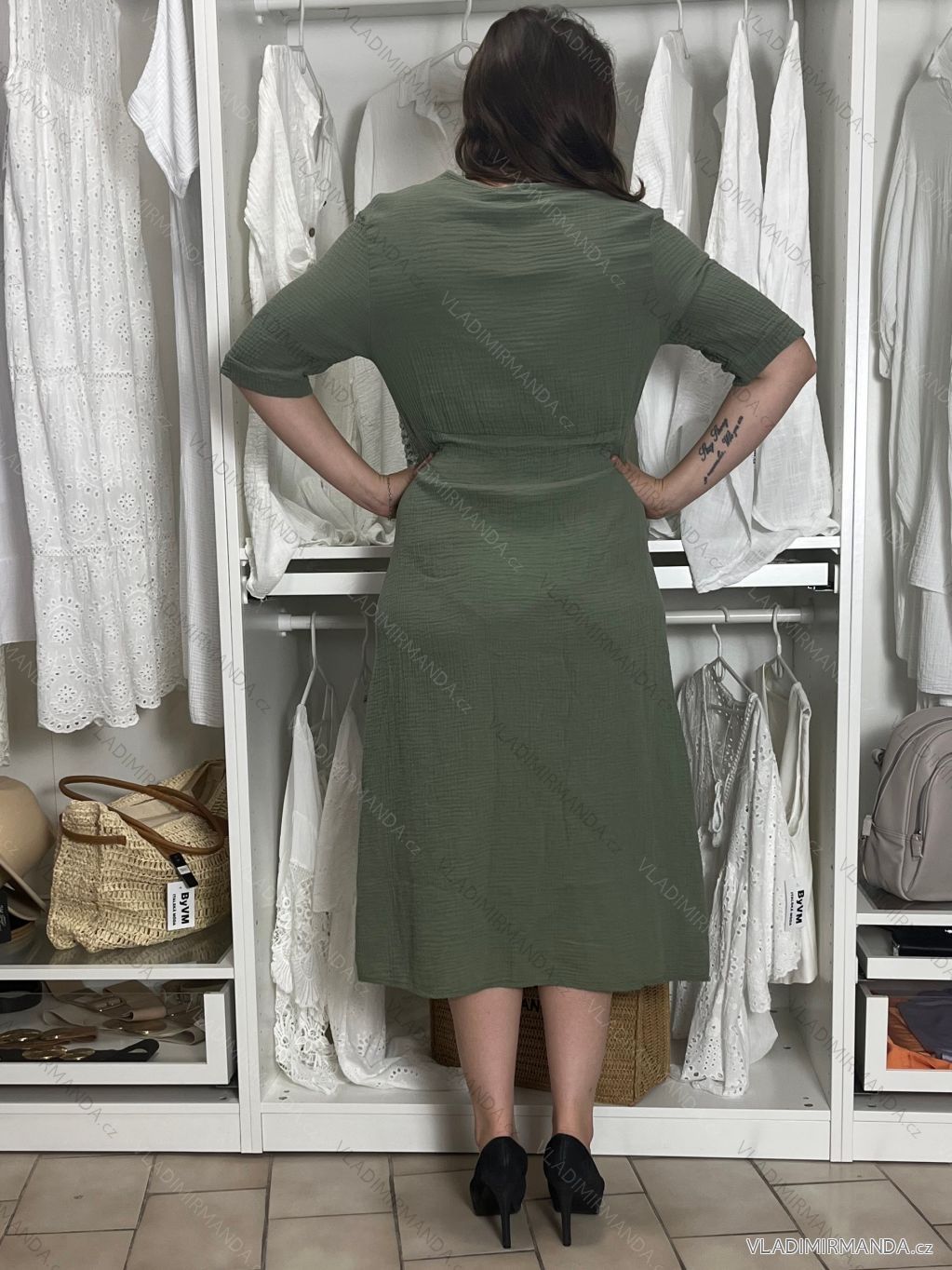 Šaty letné mušelínové krátky rukáv dámske JANET (S/M/L ONE SIZE) TALIANSKA MÓDA IMWGS232579/DU M / L zelená khaki