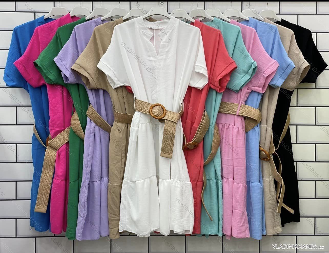 Šaty letné s opaskom krátky rukáv dámske (S/M ONE SIZE) TALIANSKA MÓDA IMWPO232048