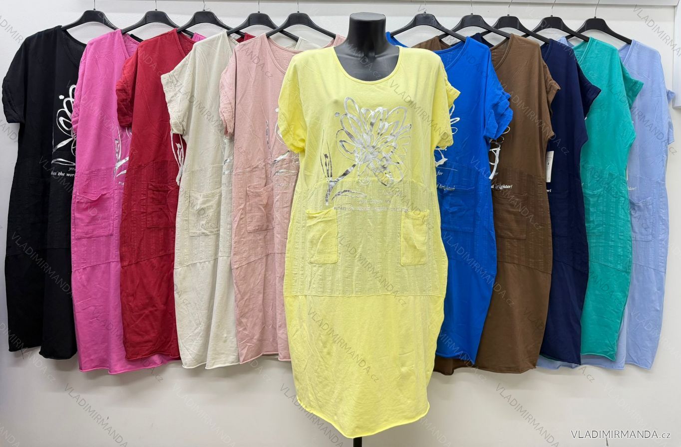 Šaty letné s vreckami krátky rukáv dámske nadrozmer (46/48/50 ONE SIZE) TALIANSKA MÓDA IM426115