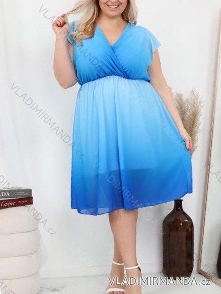 Šaty letné šifónové krátky rukáv dámske nadrozmer (XL/2XL/3XL ONE SIZE) TALIANSKA MÓDA IMWGM22OMBRE