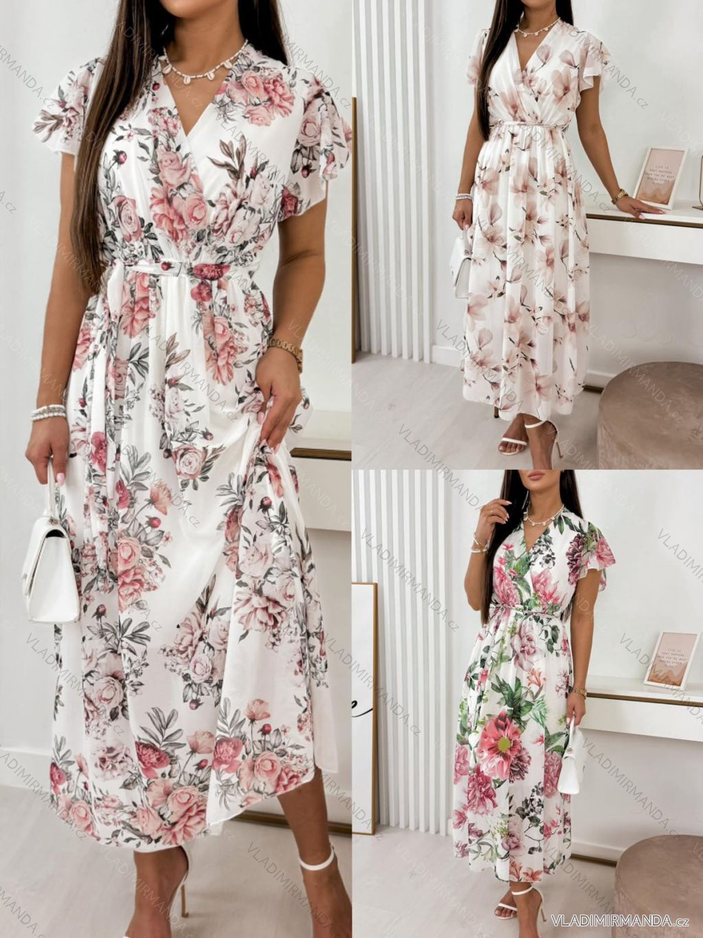Šaty letné šifónové krátky rukáv dámske nadrozmer (48/50 ONE SIZE) TALIANSKA MÓDA IMWGM24151