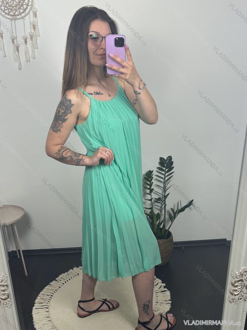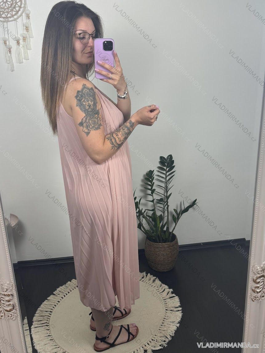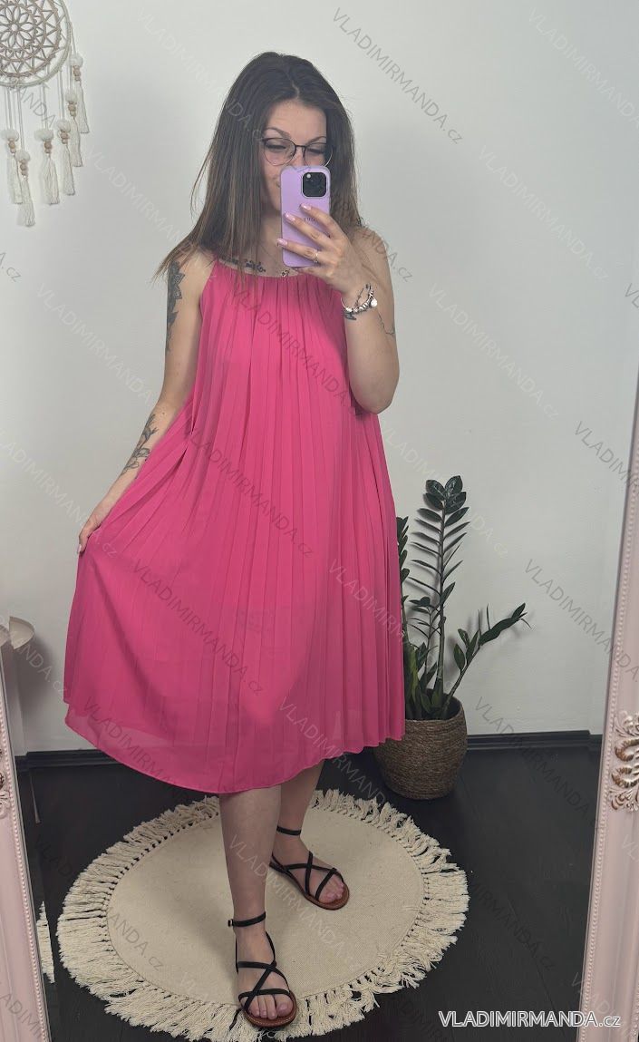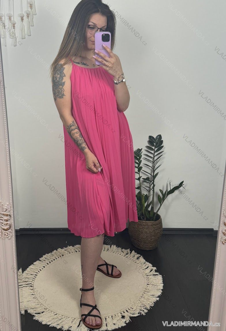 Šaty letné šifónové skladané na ramienka dámske (S/M/L/XL ONE SIZE) TALIANSKA MÓDA IMC22468/DR M/L neon ružová