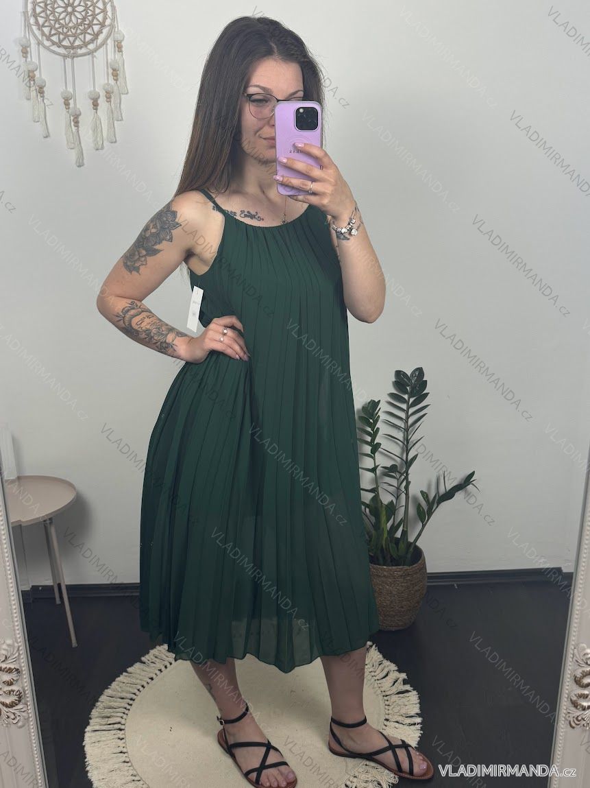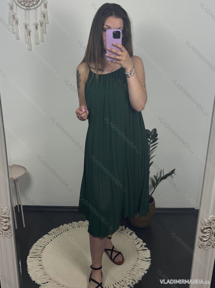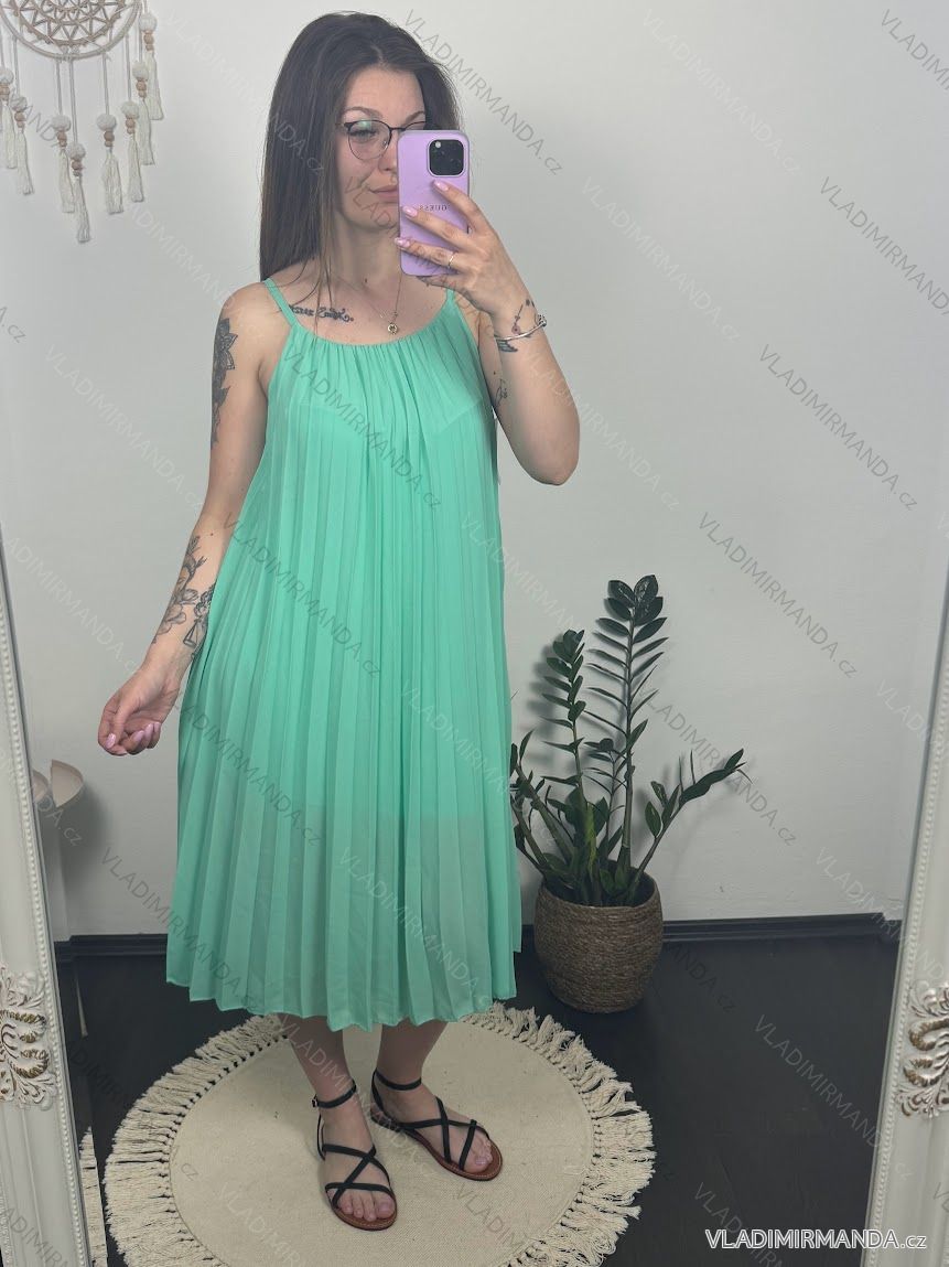 Šaty letné šifónové skladané na ramienka dámske (S/M/L/XL ONE SIZE) TALIANSKA MÓDA IMC22468/DR M/L neon ružová