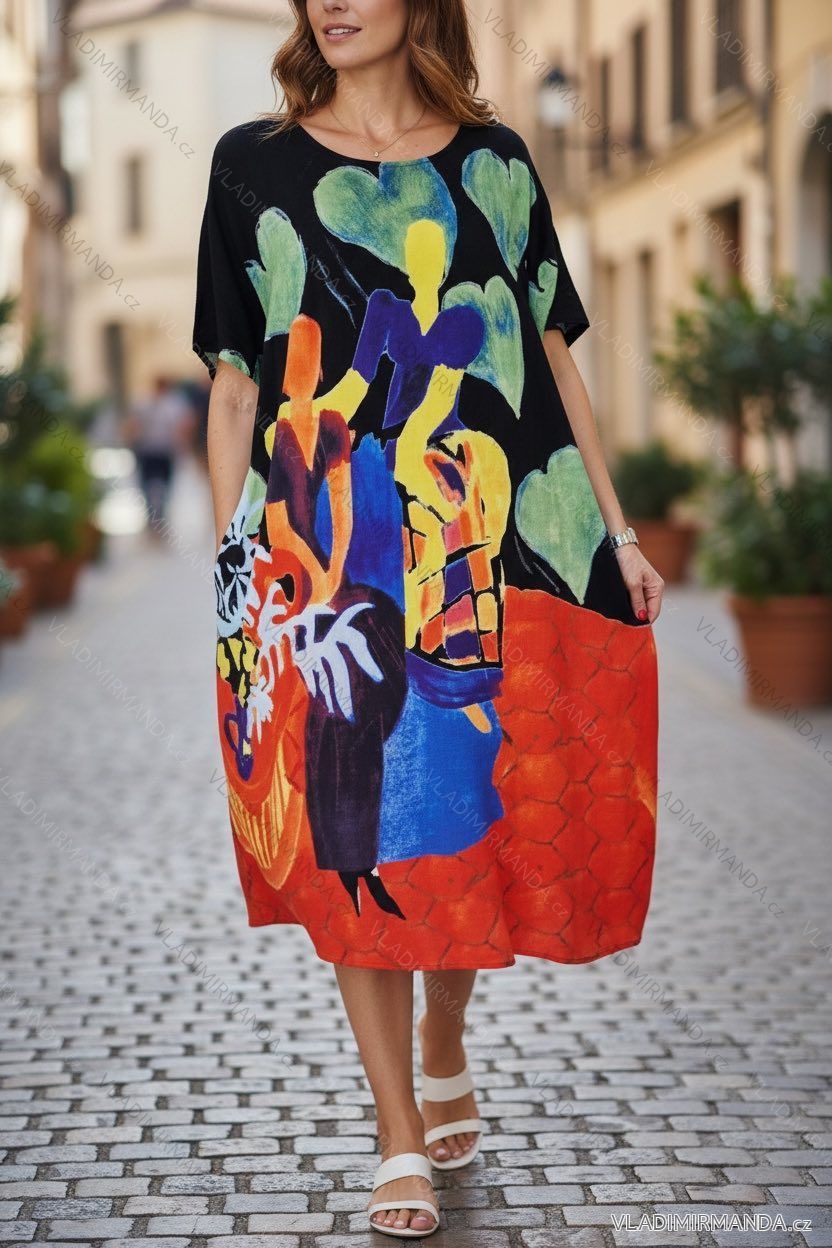 Šaty letné španielske krátky rukáv dámske nadrozmer (48/50/52 ONE SIZE) TALIANSKA MÓDA IMD26007