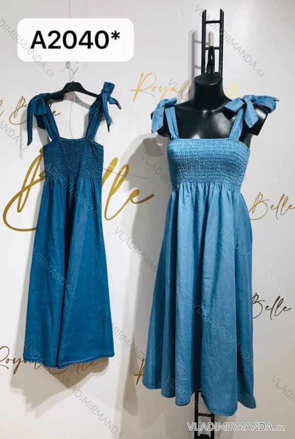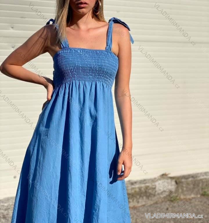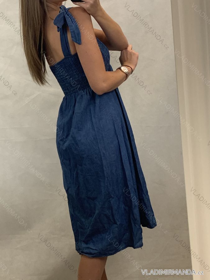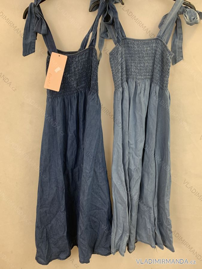 Šaty letní riflové na ramínka žabičkované dámské (S/M ONE SIZE) ITALSKÁ MÓDA IMM22A2040