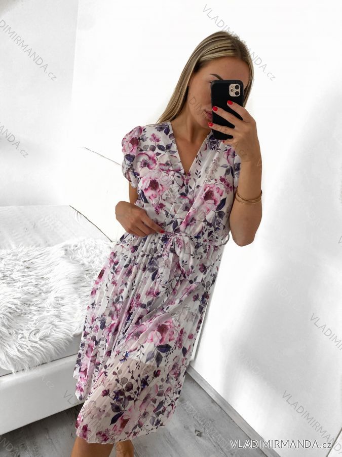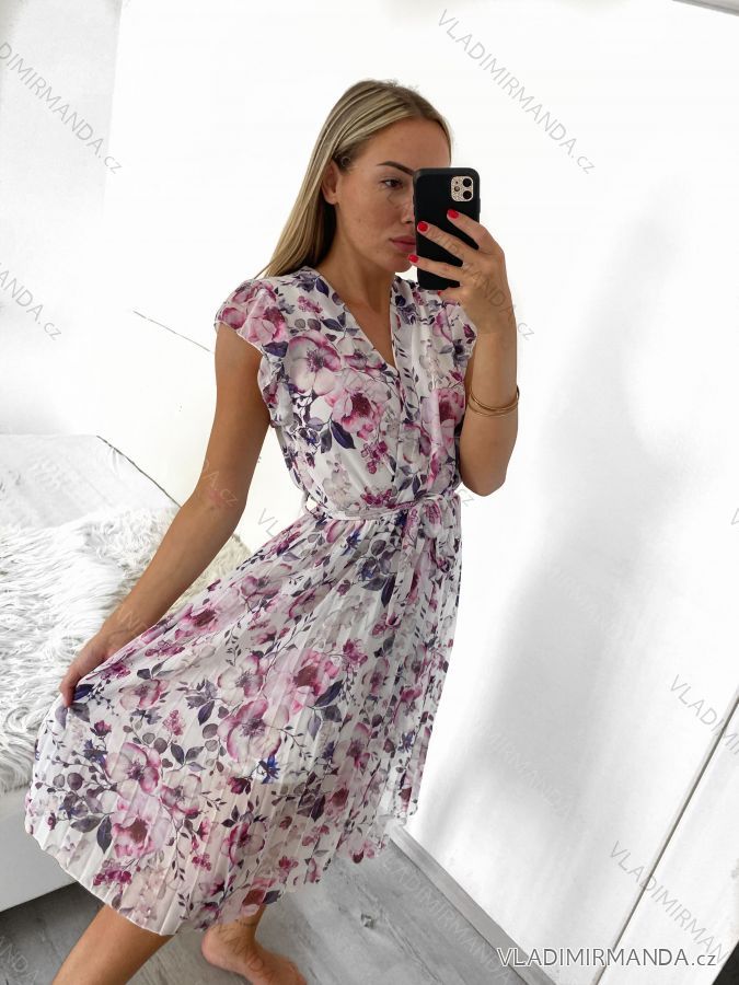 Šaty letný šifón bez rukávu skladané dámske (S/M ONE SIZE) TALIANSKA MÓDA IMWG222106