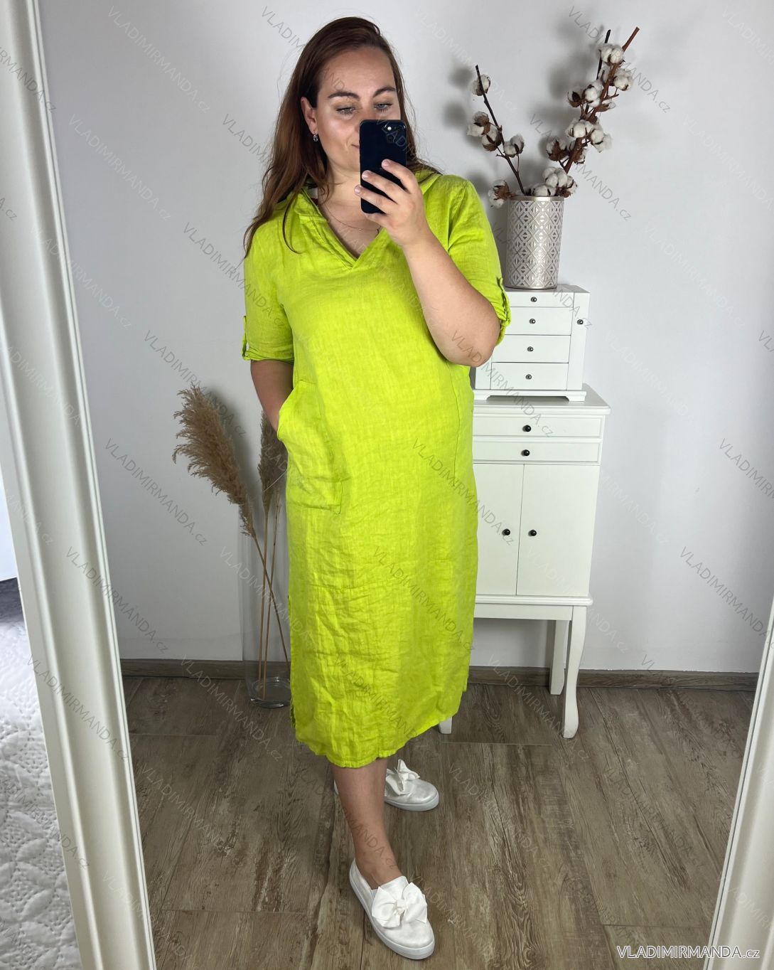 Šaty lněné dlhé letný krátký rukáv dámske nadrozmer (46/48 ONE SIZE) TALIANSKA MÓDA IME24LENA