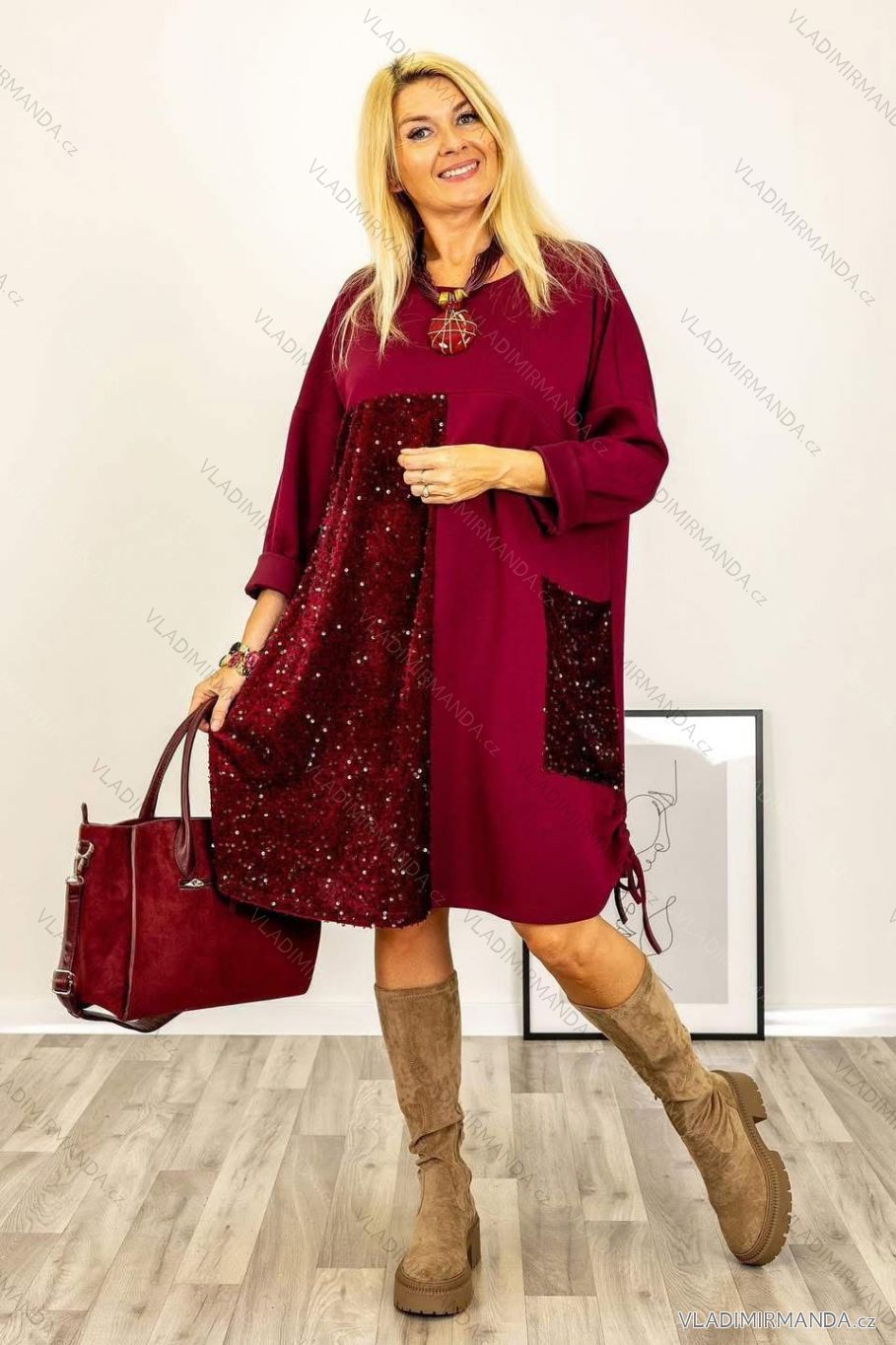 TOVAR (120811) > oblečenie dámske (81893) > šaty (30754) > Šaty flitrové (734) > Šaty maslové flitrové 3/4 dlhý rukáv dámske nadrozmer (42/44/46 ONE SIZE) TALIANSKA MÓDA IM425830