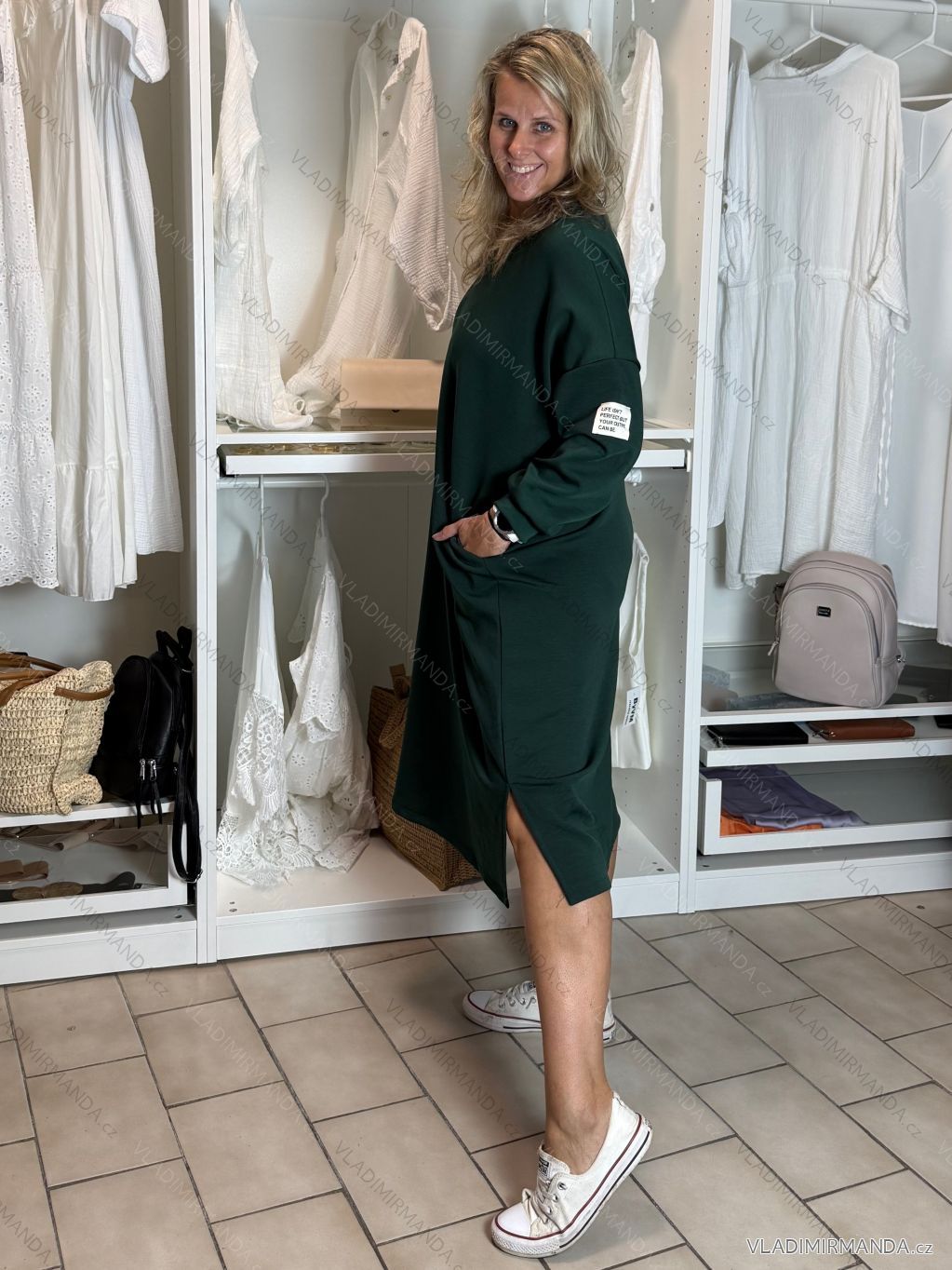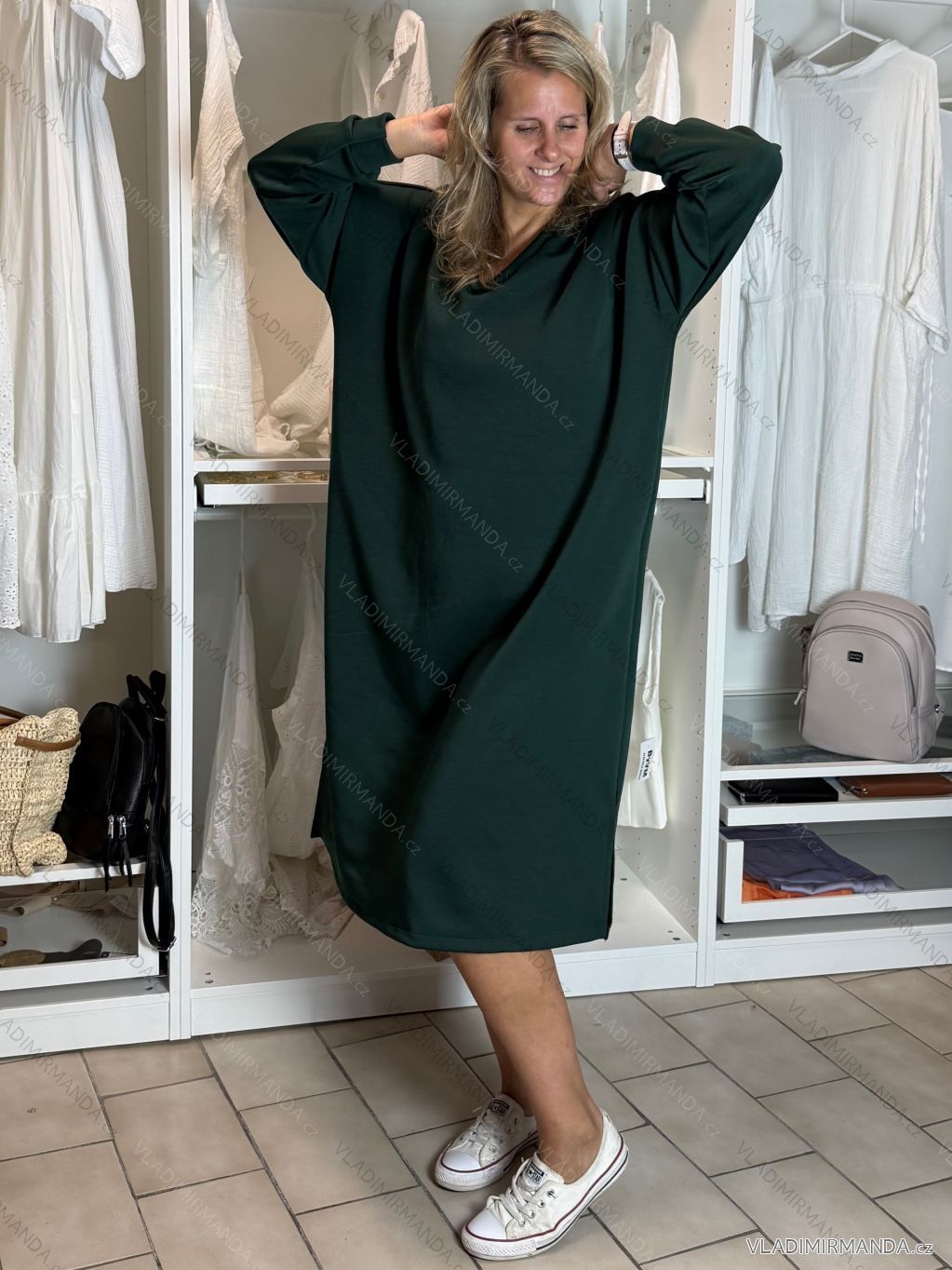 Dlouhé mikinové šaty s dlouhým rukávem
