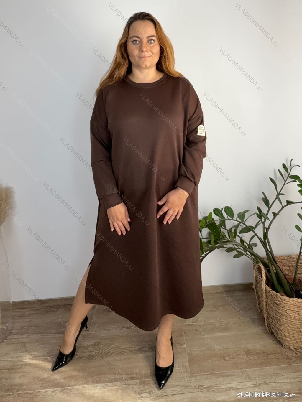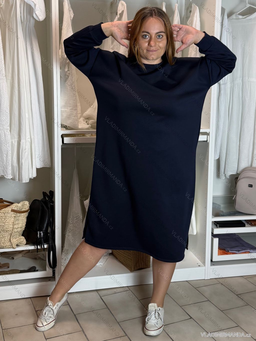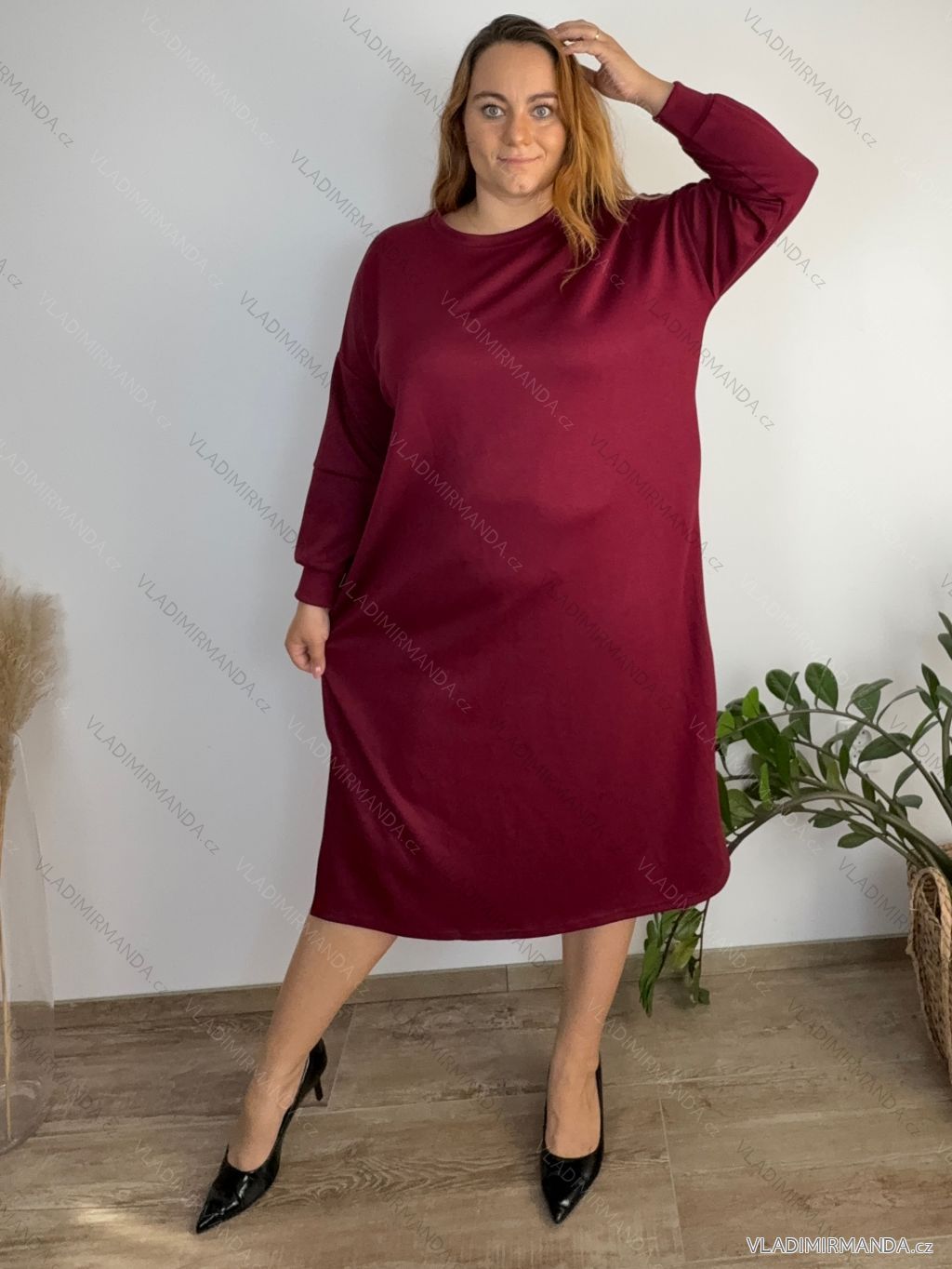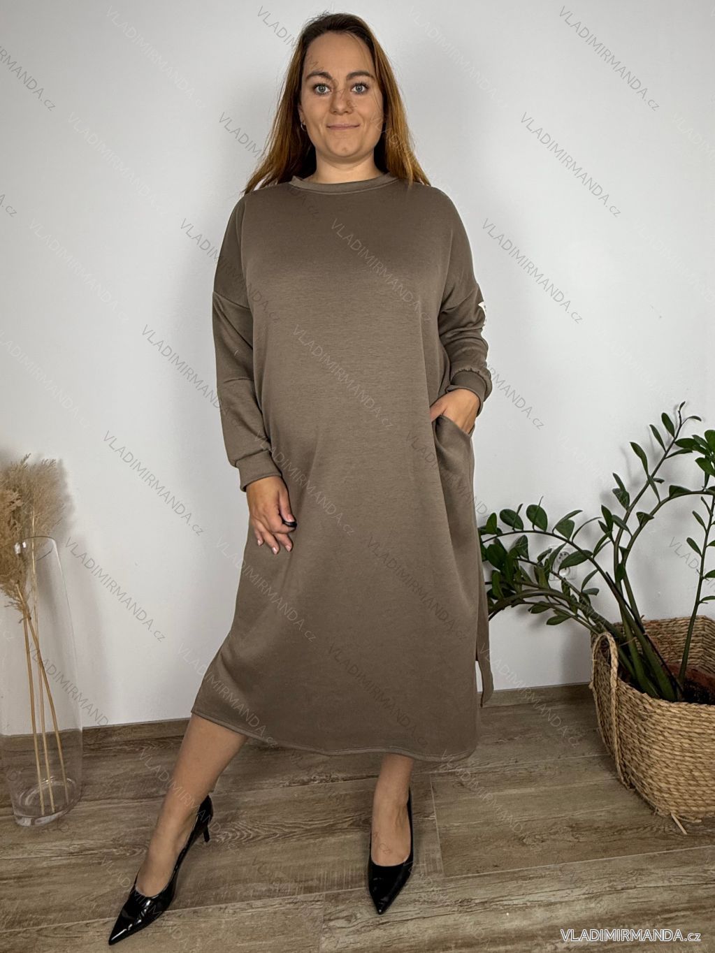 Šaty mikinové dlhý rukáv dámske nadrozmer ANNA (54/56/58 ONE SIZE) TALIANSKA MÓDA IM425534