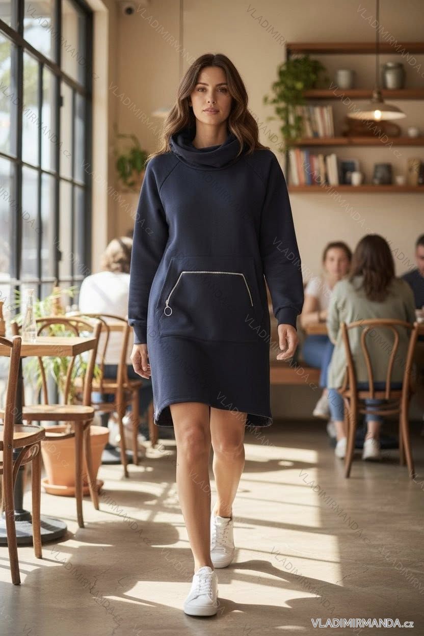 Šaty mikinové dlhý rukáv dámske nadrozmer (46/48/50 ONE SIZE) TALIANSKA MÓDA IMD25279